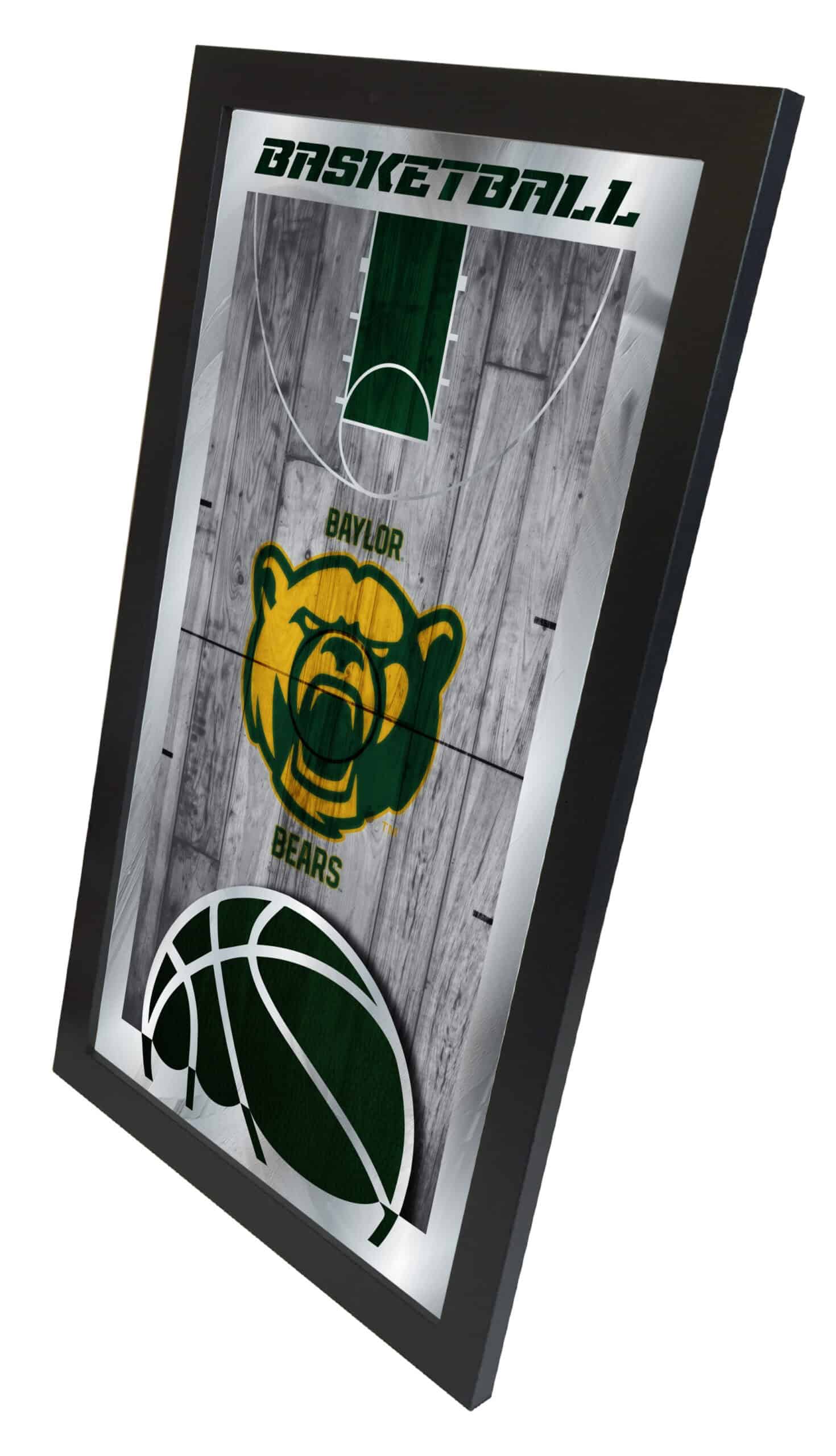 Show your school pride with this Official Licensed Basketball Mirror. With its simple yet elegant design, vibrant colors burst through the 1/8″ thick glass and are enhanced by the mirrored accents. Framed in a sleek black 1 1/4″ wrapped wood frame and featuring dual saw-tooth hangers, this 15″ (H) x 26″ (W) mirror is perfect for your office, garage, or any room in your home. Whether you’re purchasing it as a gift for a recent graduate, a sports super fan, or for yourself, you can take satisfaction in owning a quality mirror.