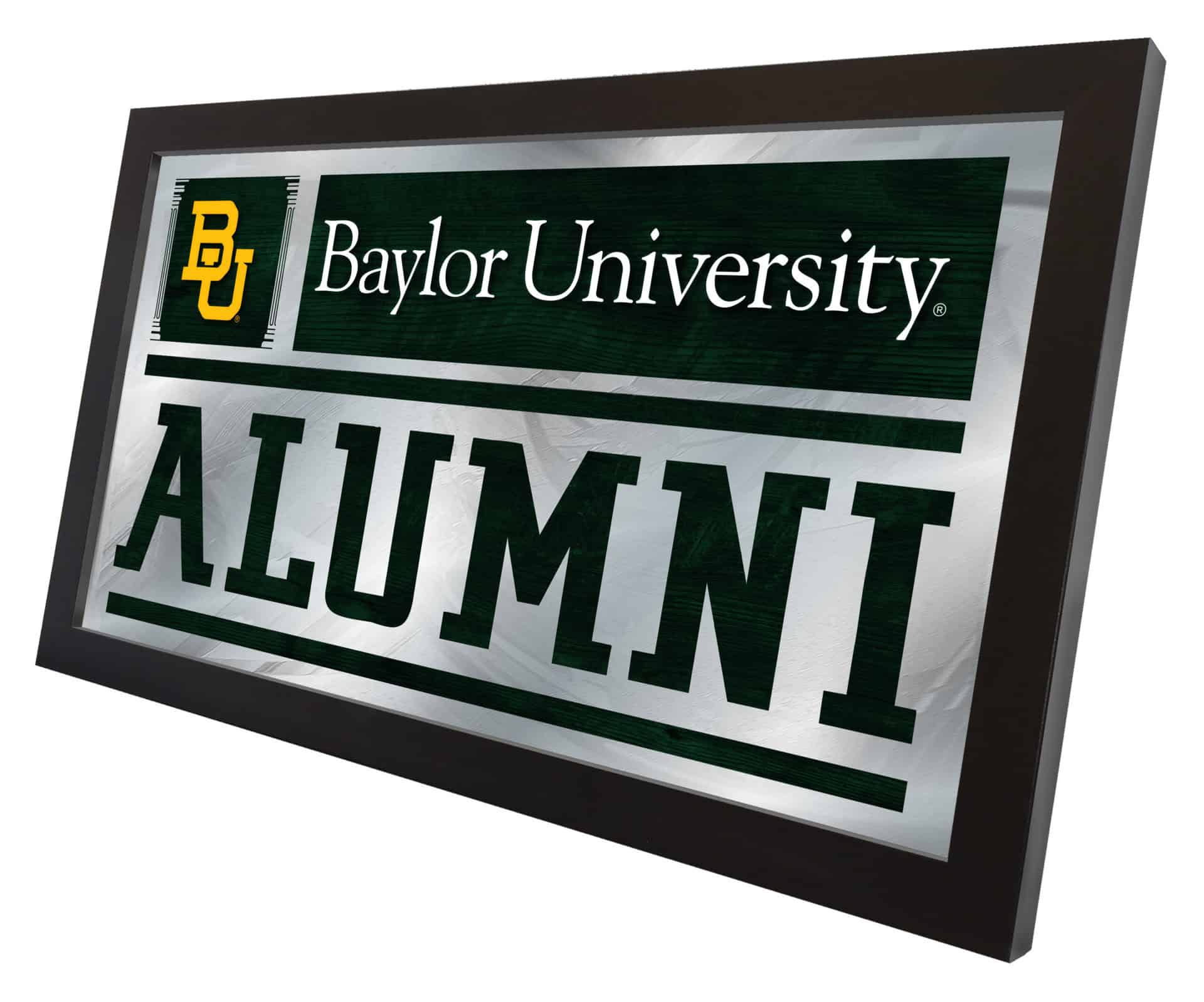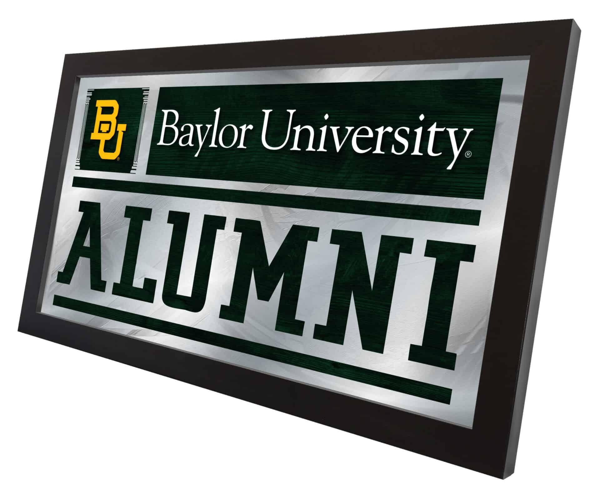 Show your school pride with this Alumni wall mirror. With its simple yet elegant design, your school colors burst through the 1/8″ thick glass and are beautifully highlighted by mirrored accents. The mirror is framed with a black, 1 1/4″ wrapped wood frame and features saw tooth hangers, making it an ideal addition to your office, garage, or any room in the house. Whether you are purchasing it as a gift for a recent graduate or for yourself, you can take satisfaction in knowing this mirror is proudly crafted in the USA.