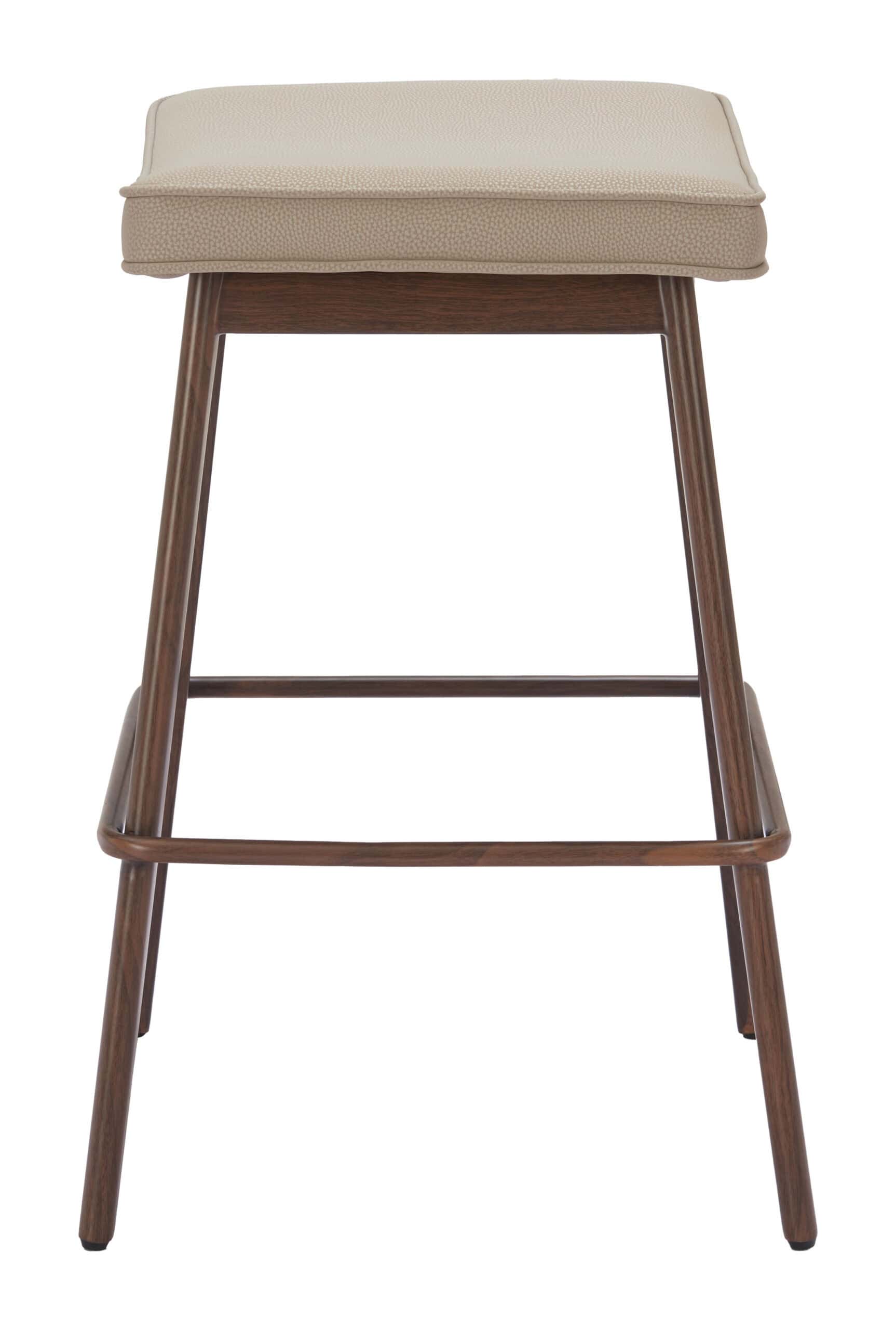 Meet the Beige Faux Leather Counter Stool with Walnut Finish, a perfect marriage of style and comfort for your kitchen or counter seating. This set of two counter stools features a sleek design that combines a plush faux leather seat and a warm walnut-finished frame for a sophisticated look. The built-in footrest ensures optimal comfort, while the rubber feet protect your floors from scratches. With no assembly required, these stools offer both convenience and style, making them an ideal choice for any modern space.