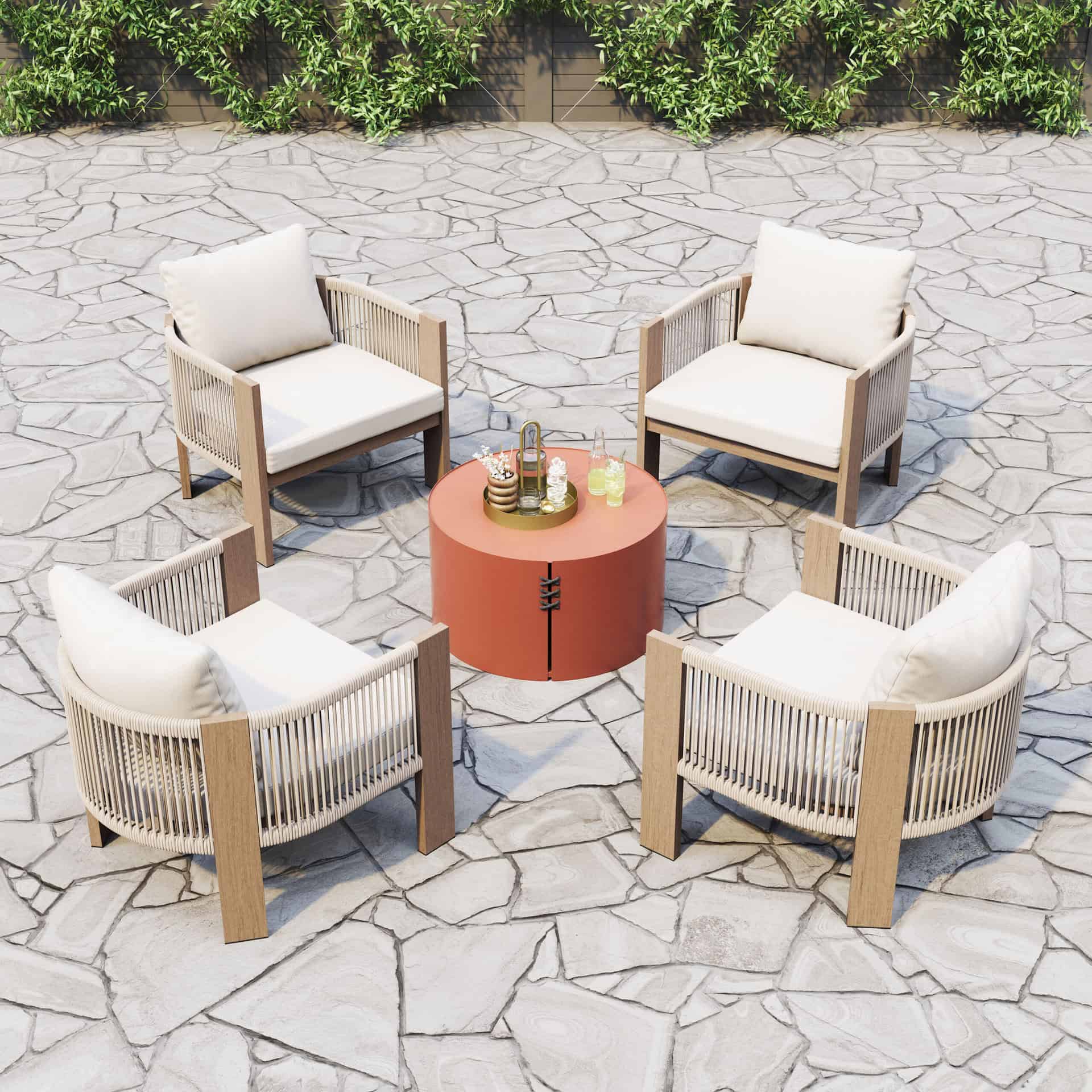 The Beige Outdoor Accent Chair with Aluminum Frame and Olefin Cushions is a perfect addition to any outdoor living space, combining contemporary design with exceptional durability. Featuring a sturdy powder-coated aluminum frame and cushions wrapped in premium olefin fabric, this chair ensures long-lasting resilience against the elements. Whether you’re creating a cozy retreat on your patio or enhancing the seating in your man cave, this chair offers both style and comfort. Its thoughtful design includes armrest support, removable and washable cushion covers, and rubber feet to prevent floor scratches. Enjoy the perfect blend of function and elegance with this versatile accent chair.
