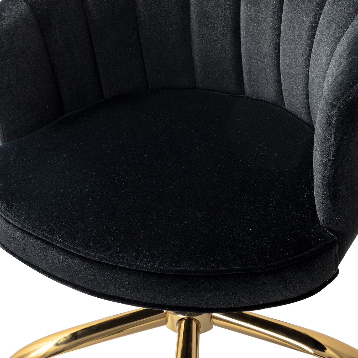 The Belanda Black Velvet Tufted Flower Back Swivel Task Chair adds a touch of contemporary elegance to any office or home office. This chair combines functionality and style, making it a wonderful addition to your workspace.