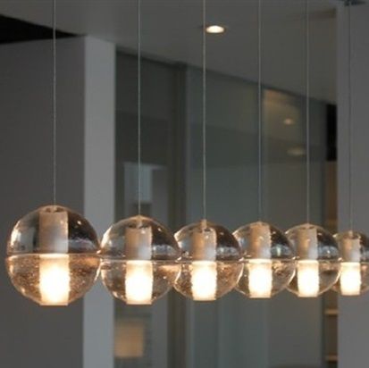 This pendant lamp features clear glass shades and integrated LED lighting, offering a modern aesthetic. The design provides ambient illumination, making it a stylish focal point for any space.