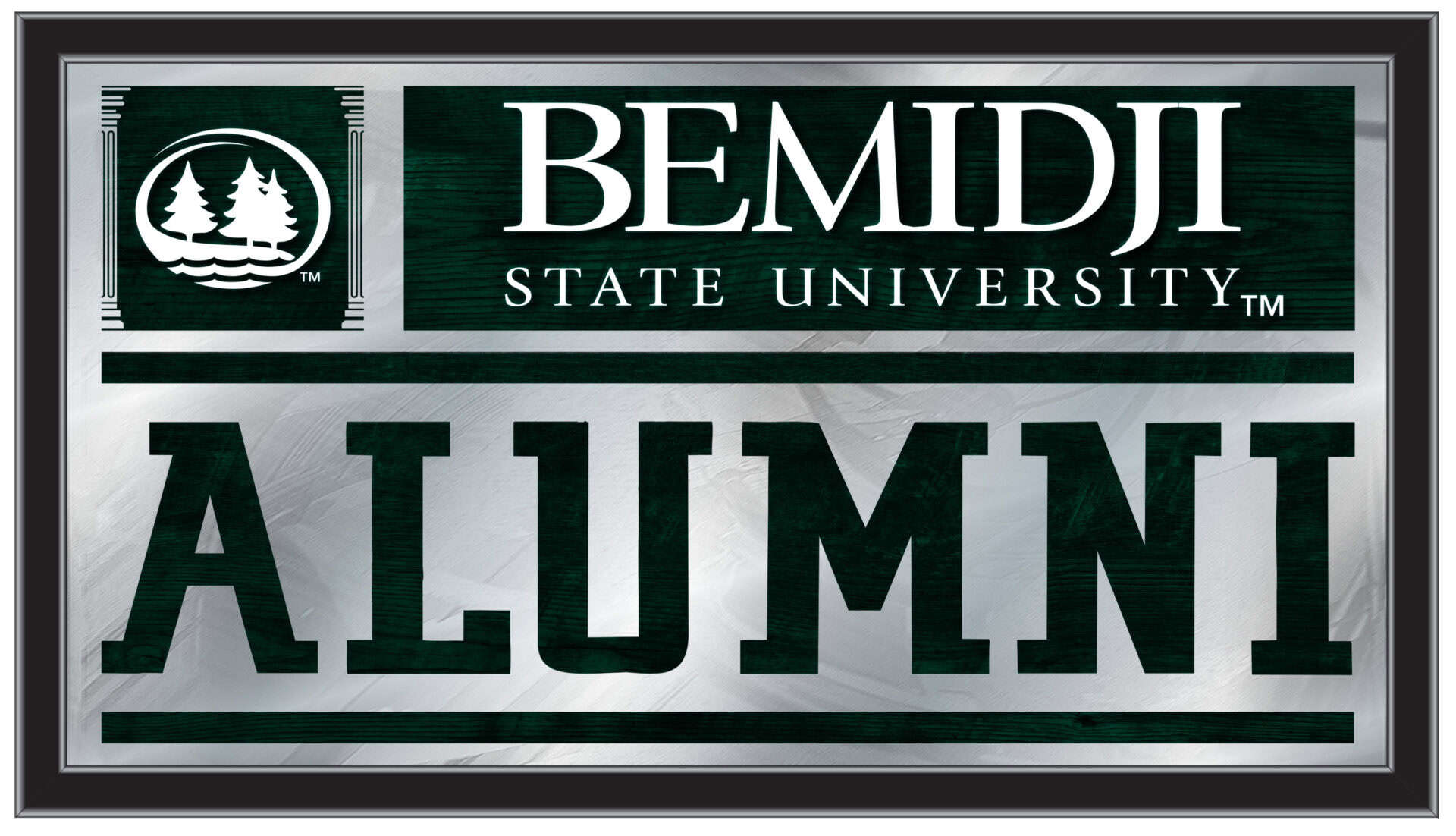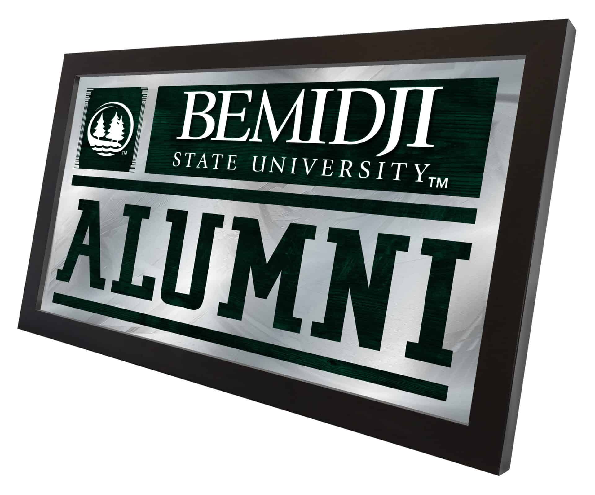 Show your school pride with the Bemidji State University 26×15 Alumni Wall Mirror. This mirror features a simple yet elegant design, showcasing vibrant school colors through the 1/8″ thick glass, complemented by mirrored accents. The mirror is framed in a sleek black, 1 1/4″ wrapped wood frame with saw tooth hangers, making it ideal for any room in your home, office, or garage. Perfect as a gift for recent graduates or as a stylish addition to your own space, this mirror combines functionality and school spirit.