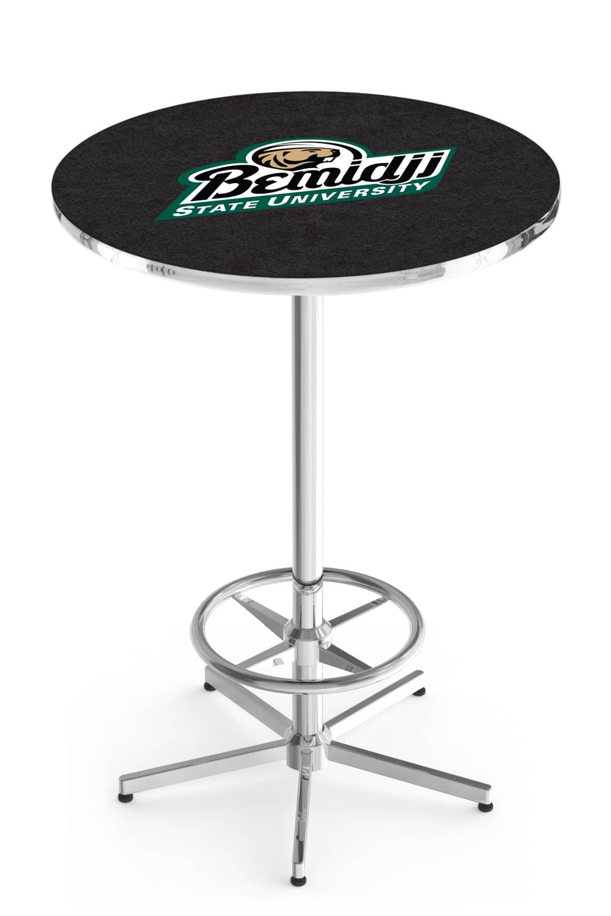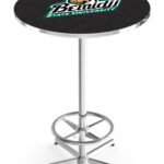 Elevate your bar, game room, or man cave with this high-quality 42-inch pub table. Designed for durability and style, this table features a vibrant, full-color, scratch-resistant laminate top that will impress any sports fan. The triple chrome-plated steel base ensures exceptional stability and long-lasting performance, while adjustable floor glides provide a level surface even on uneven floors. Easy to assemble and simple to clean, this table is the perfect addition to any space looking for a touch of class and functionality.