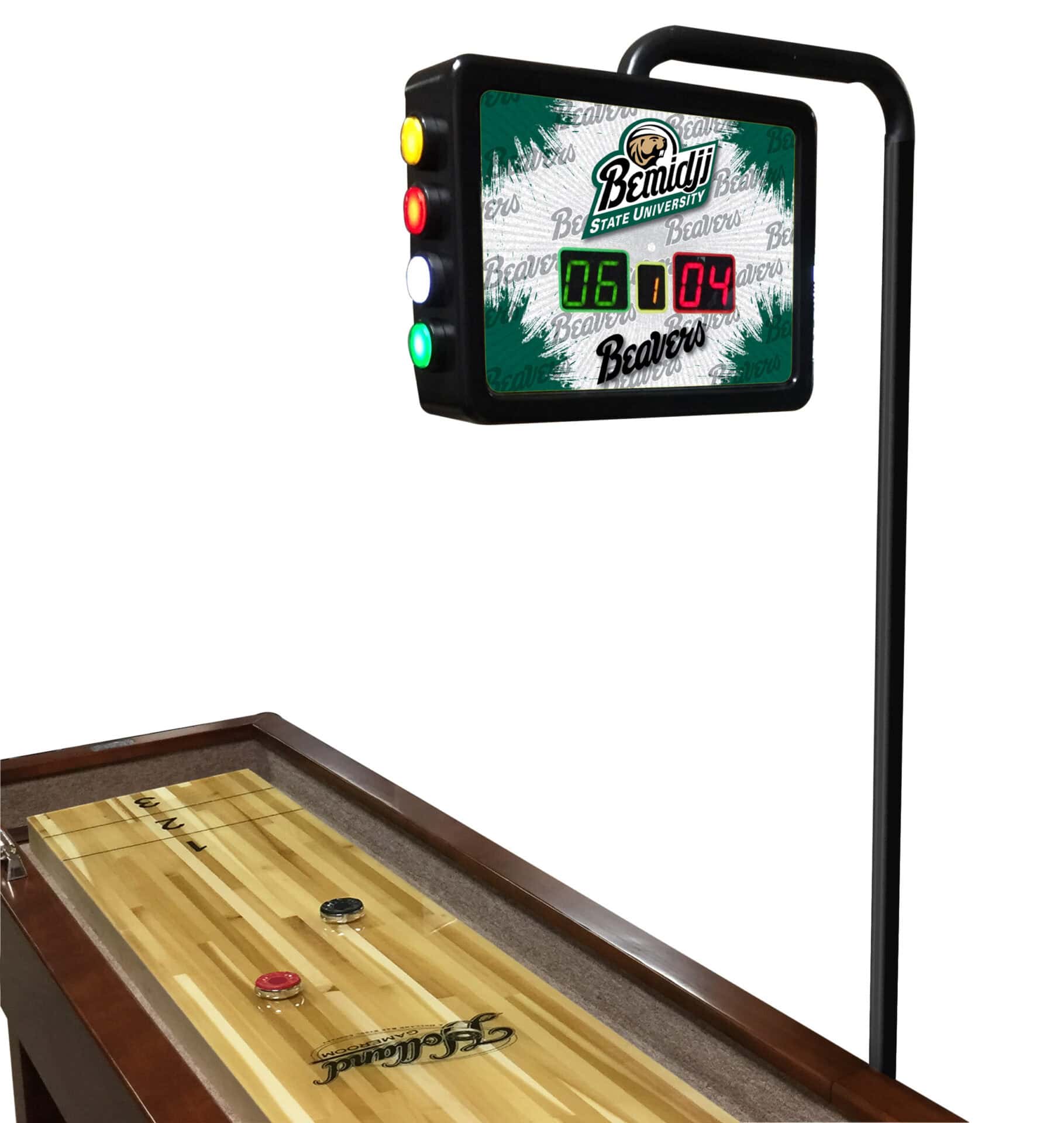 Enhance your shuffleboard gaming experience with this officially licensed electronic scoring unit designed for Bemidji State University fans. This innovative scoring system eliminates the hassle of manual score tracking, providing a digital and user-friendly solution for tracking points and rounds during gameplay.