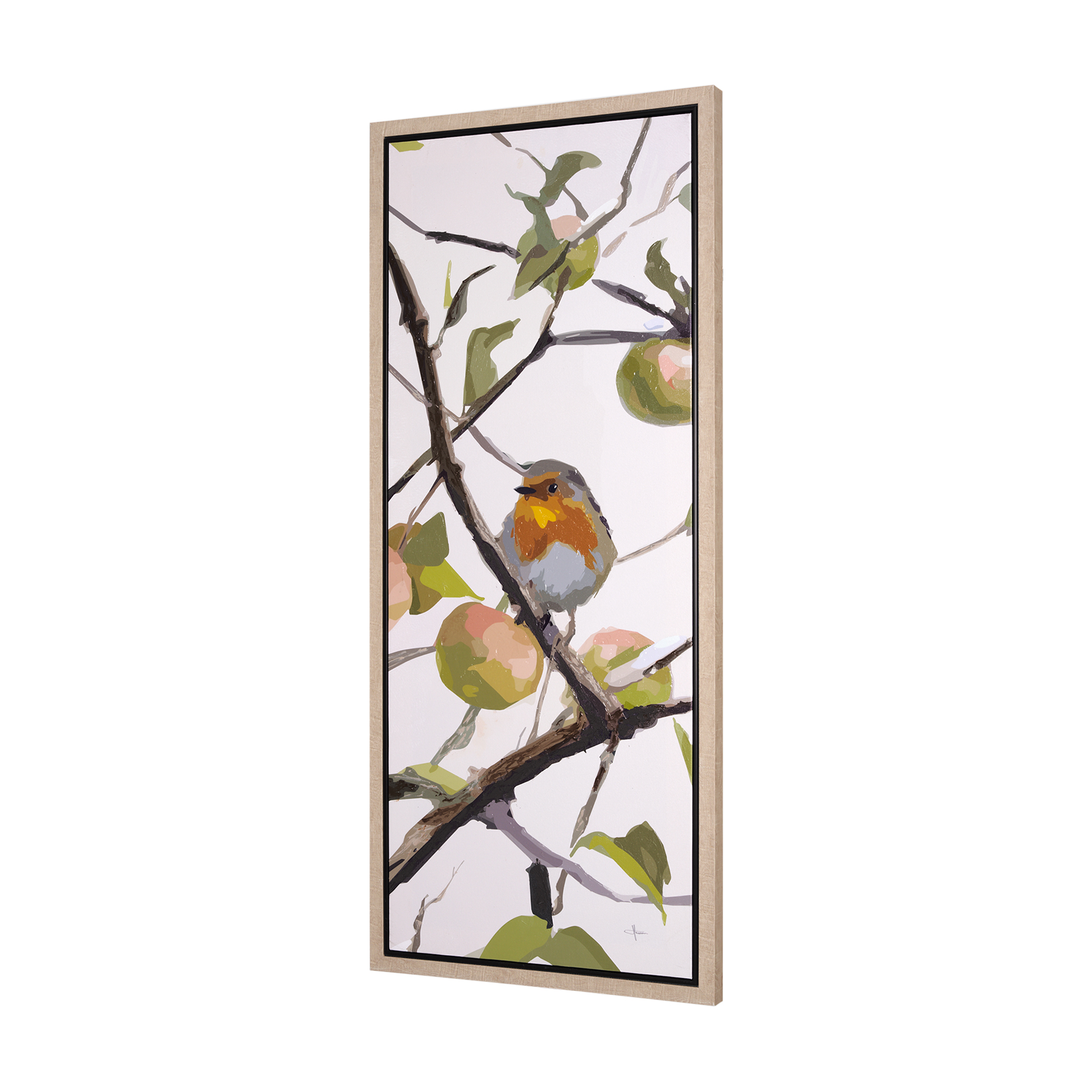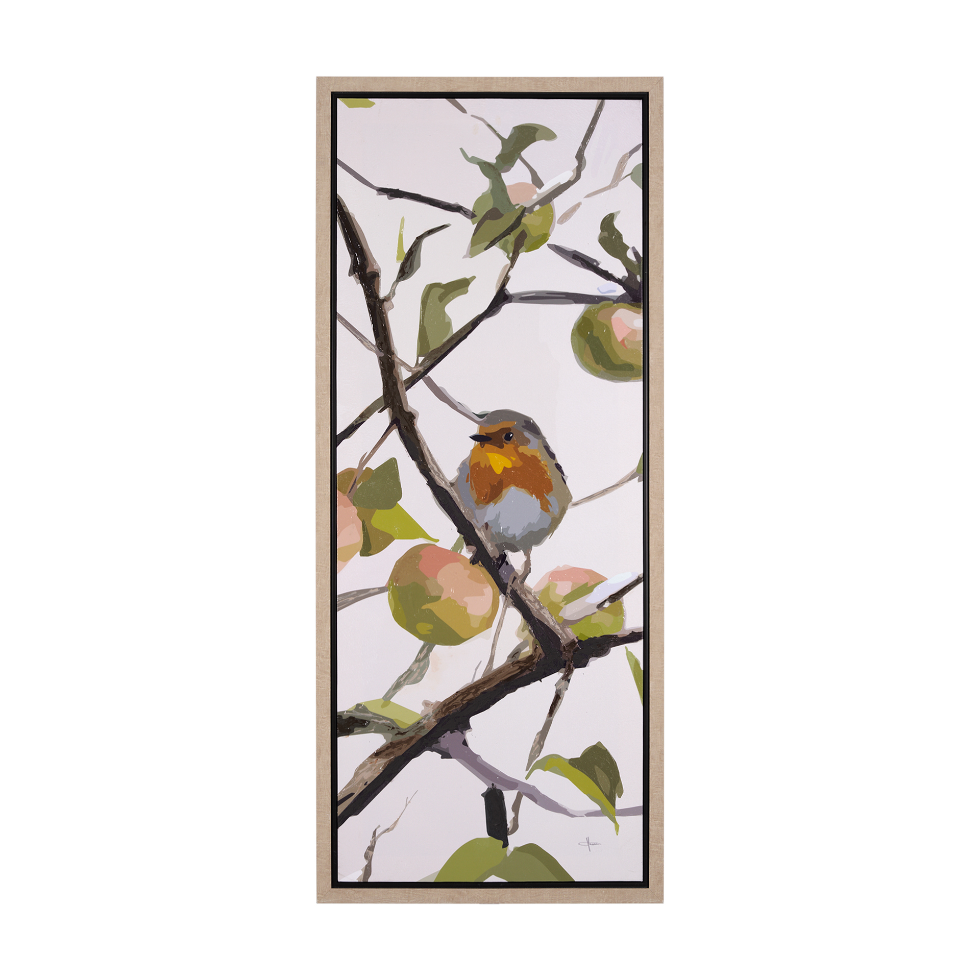 The “Birds & Apples I” hand-embellished textured canvas offers a sophisticated artistic touch to any space. This piece captures the eye with its unique texture and artistic rendering.