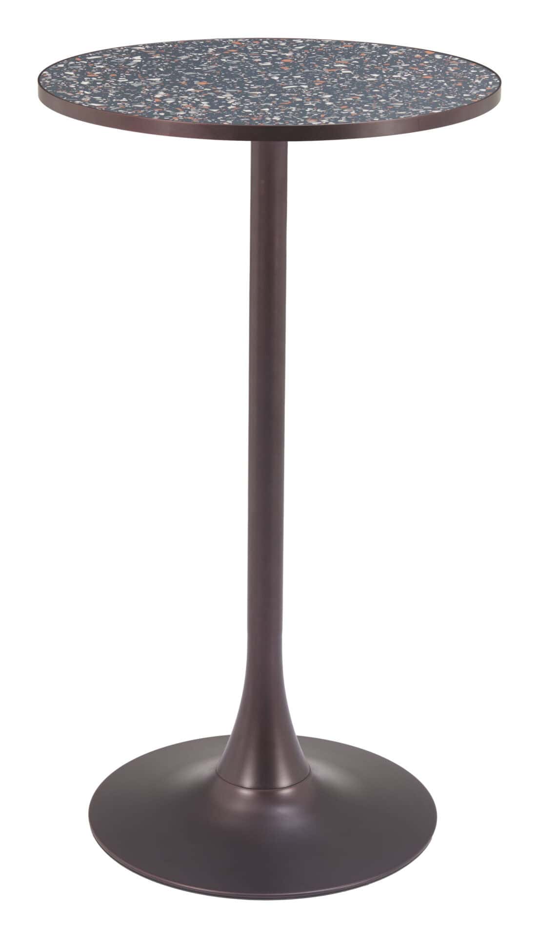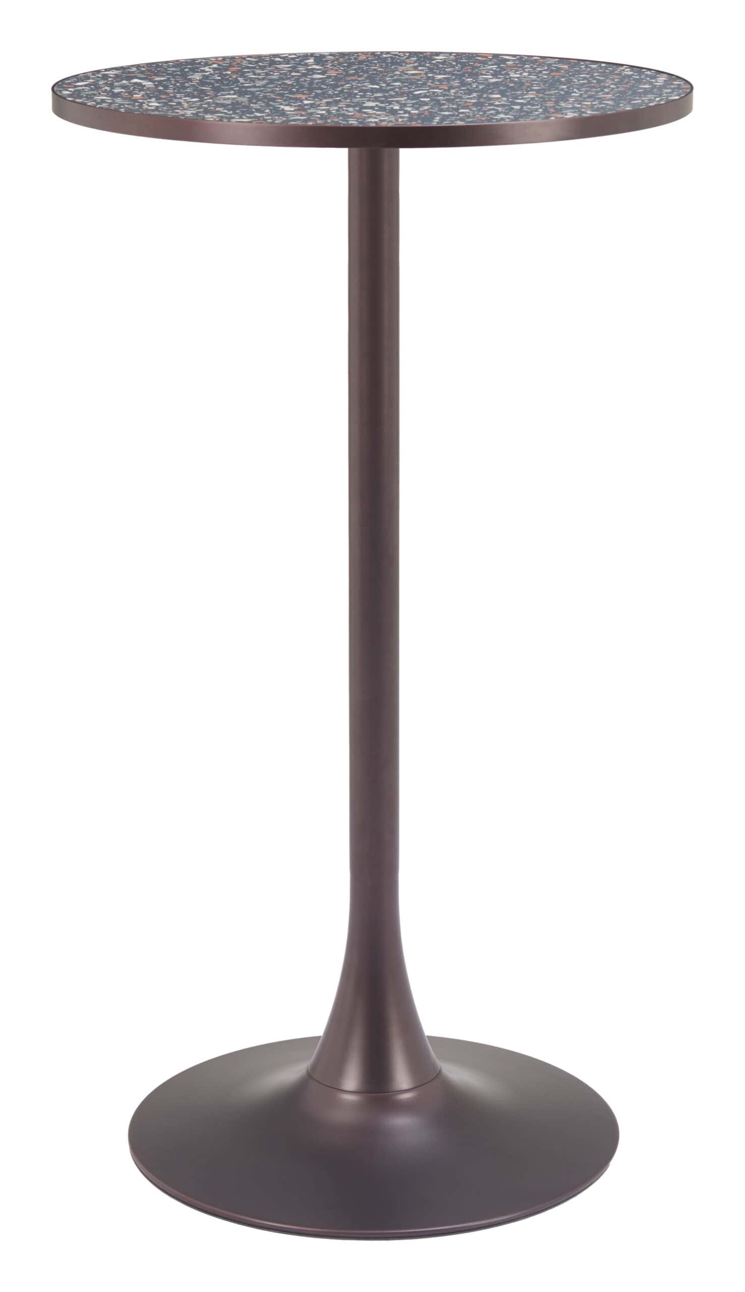 Introduce a unique, stylish piece to your space with the Black & Bronze Round Bar Table with Steel Frame, an exceptional example of modern design. Made from high-quality materials, this bar table strikes the perfect balance between aesthetics and practicality. Its chic, contemporary design makes it a standout addition to any modern setting, while its compact form is perfect for small areas like man caves or home bars.