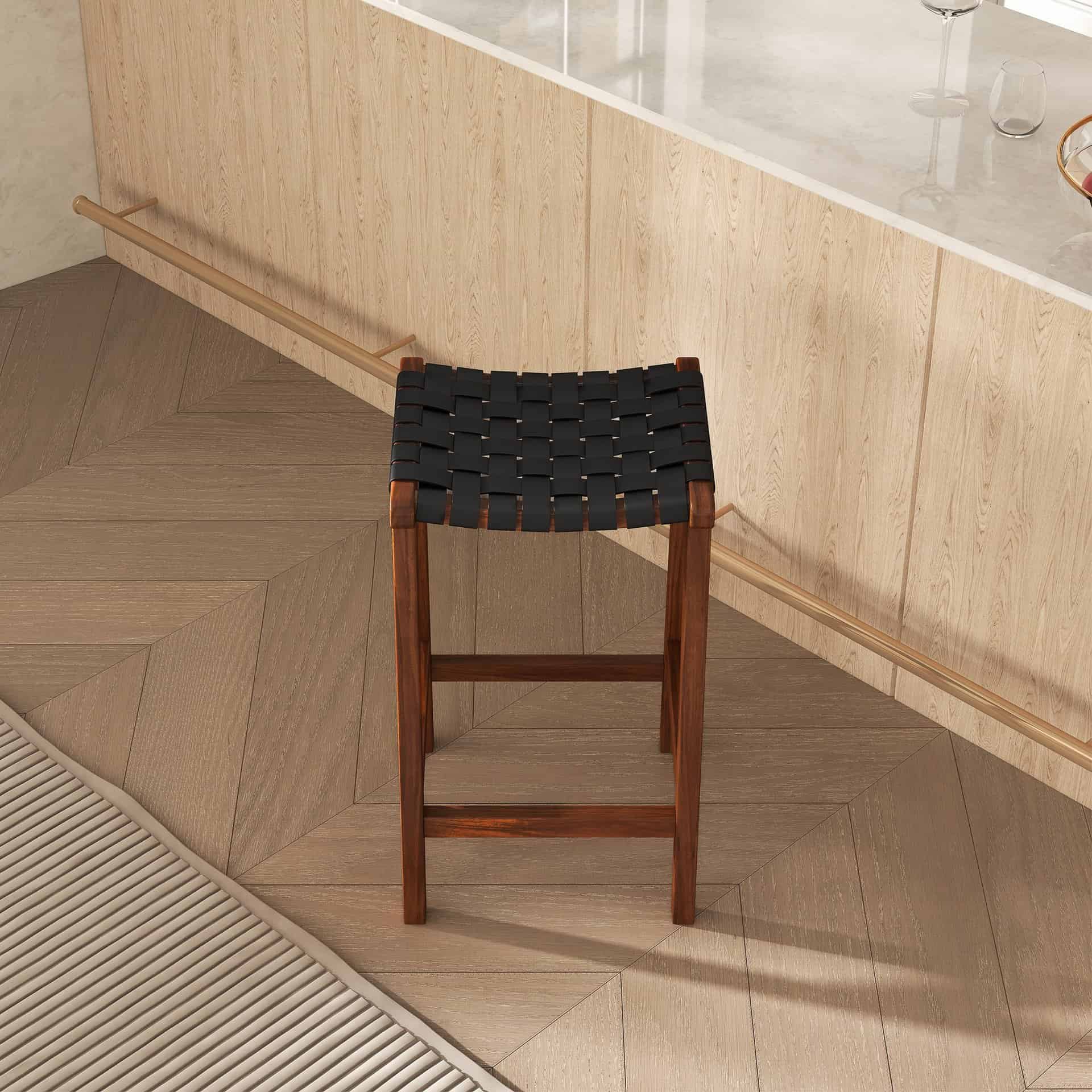 These 29-inch genuine leather bar stools are a perfect addition to any Mid-Century Modern living room furniture collection. Designed to combine style and functionality, this bar stool is an excellent choice for kitchens, apartments, lofts, or condos. Crafted with high-quality materials, it is built to last and ensures durability for everyday use.