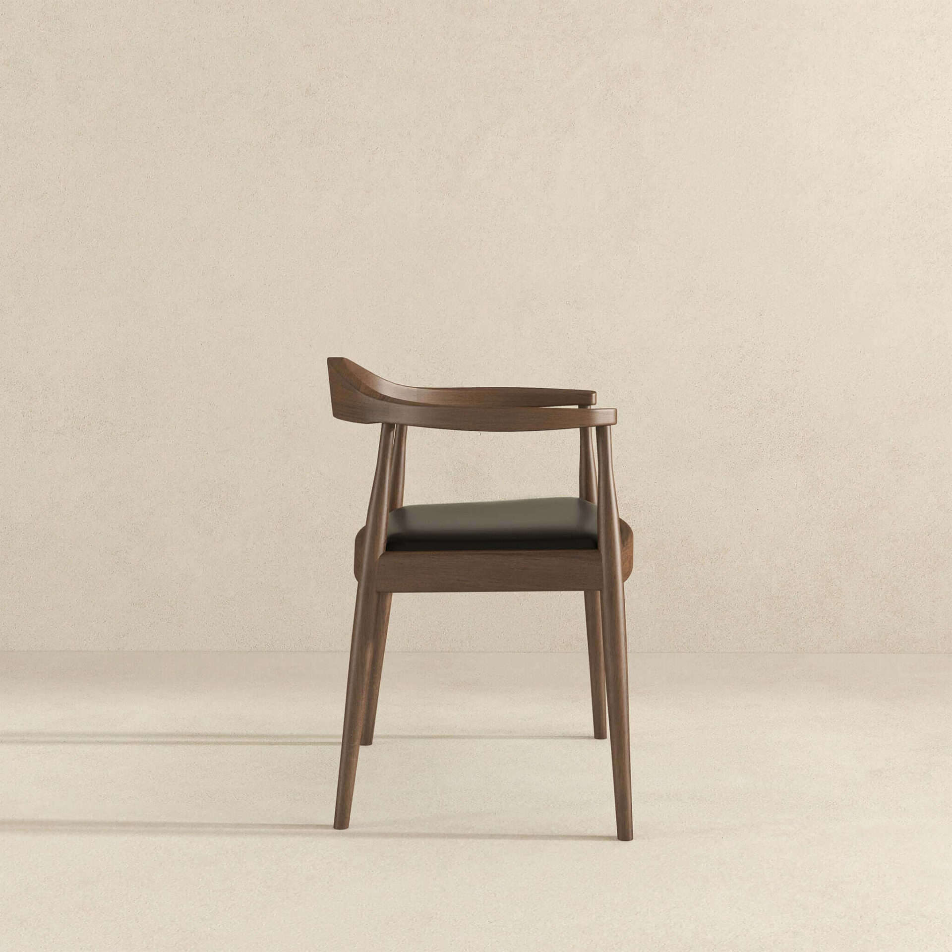 The Black Leather Mid-Century Modern Solid Wood Dining Chair is a timeless and elegant piece that seamlessly blends style and functionality. Featuring a minimalist design with clean lines, this chair captures the essence of mid-century modern aesthetics. Its slender frame, crafted from high-quality solid wood, ensures exceptional durability while maintaining a visually appealing silhouette. The smooth black leather upholstery adds sophistication and comfort, making it an ideal addition to any dining space, from contemporary to retro-inspired interiors.