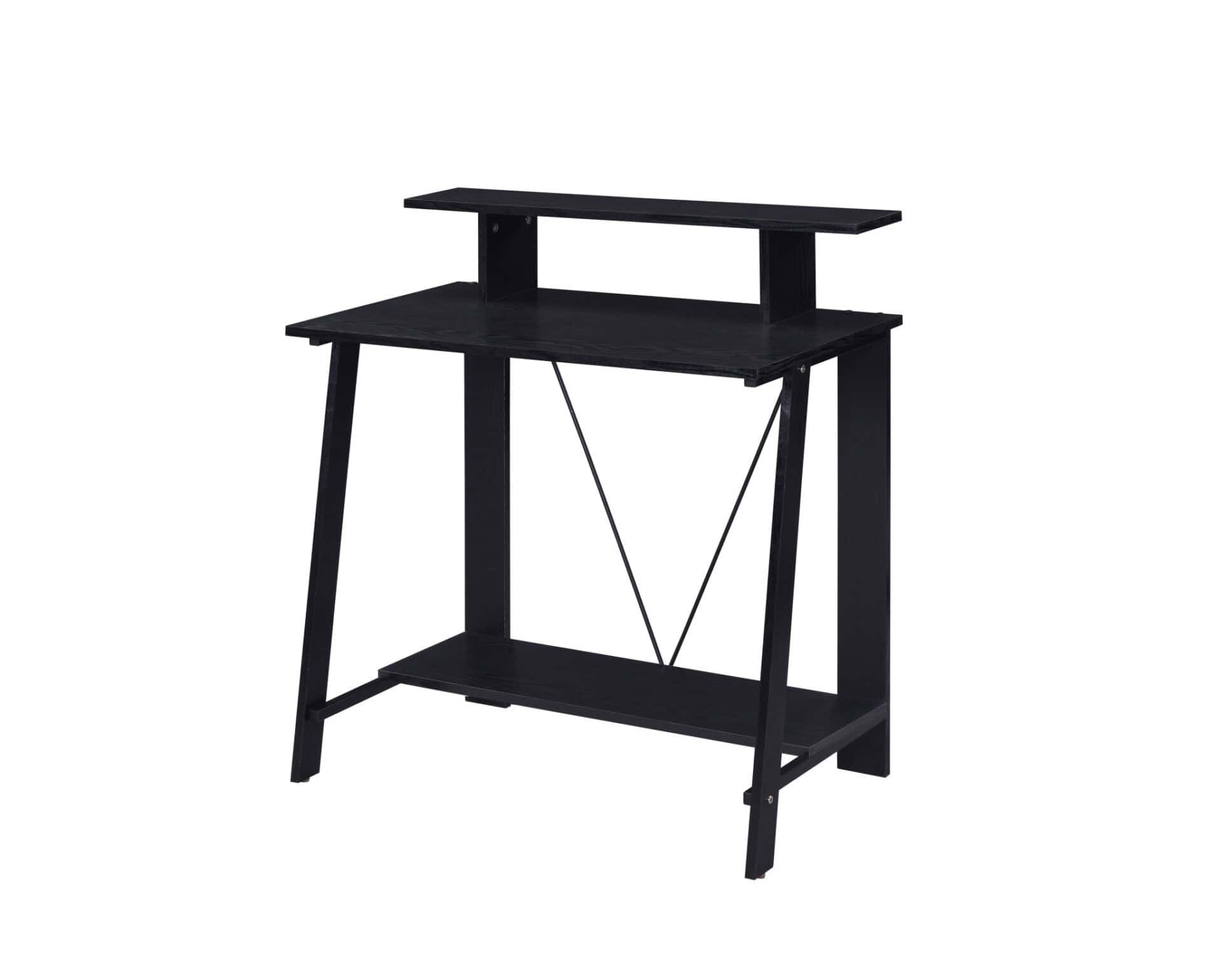 - Desk Design: Includes top and bottom shelves