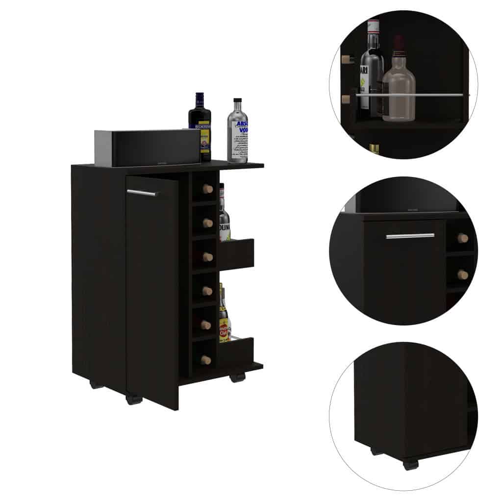 - Design: Contemporary black bar cart with a sleek and modern aesthetic