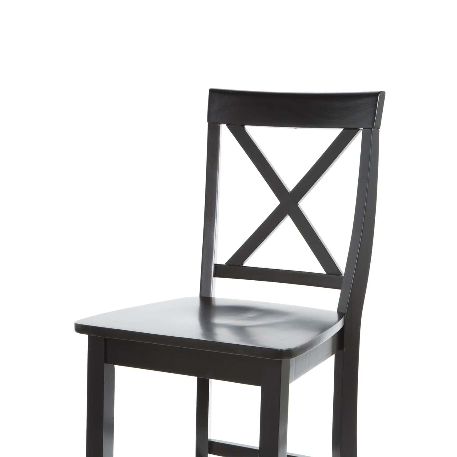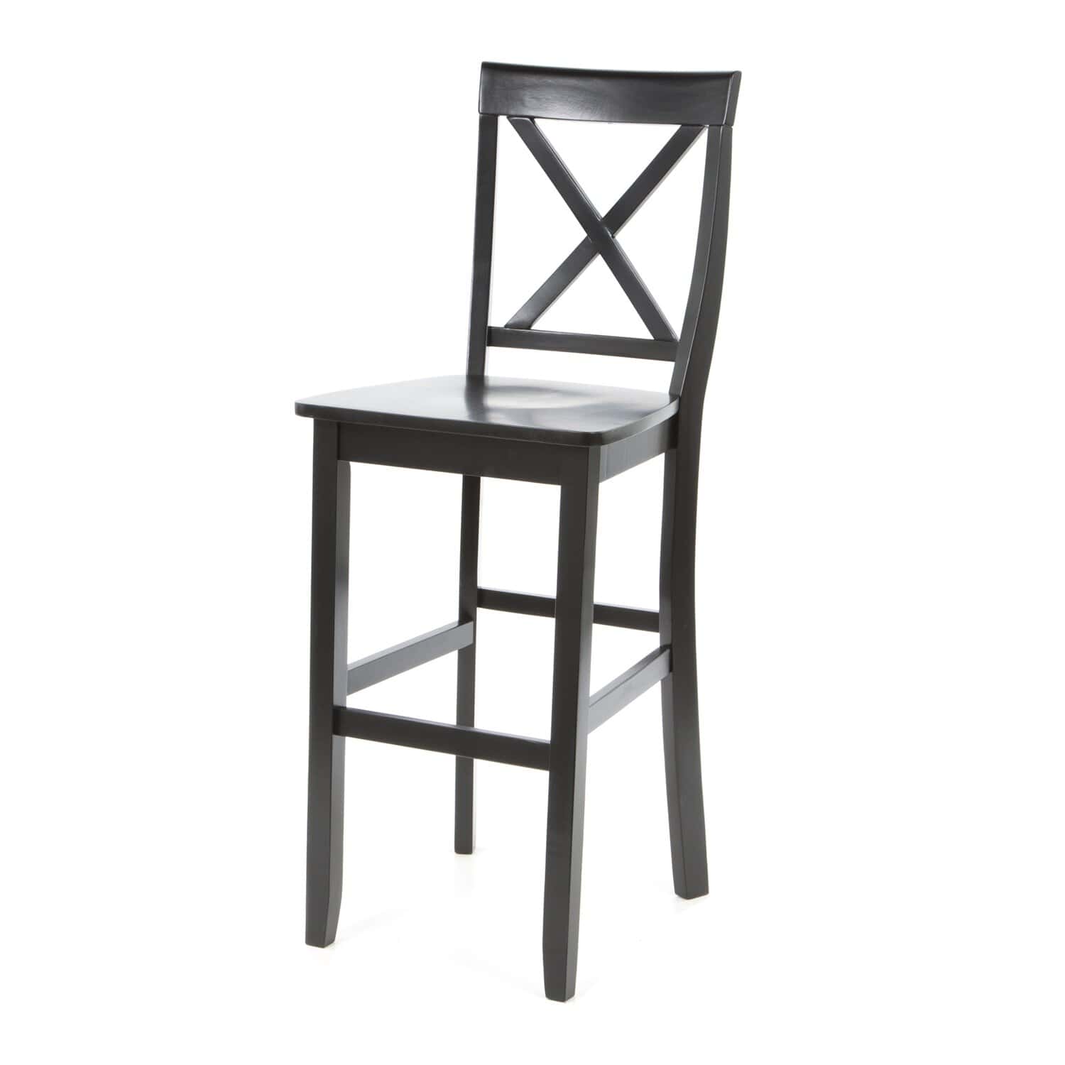 Add style and functionality to your table, bar, or kitchen island with the Black Solid Wood X-Back 30-Inch Barstools for Home Bars (Set of 2). These versatile stools are designed with a perfect blend of simplicity and elegance. Featuring a contoured seat for added comfort and an “X” shaped backrest that promotes proper posture, these barstools provide both style and support. Compact enough to fit seamlessly into various spaces, they still make a bold statement with their solid wood construction and contemporary design.
