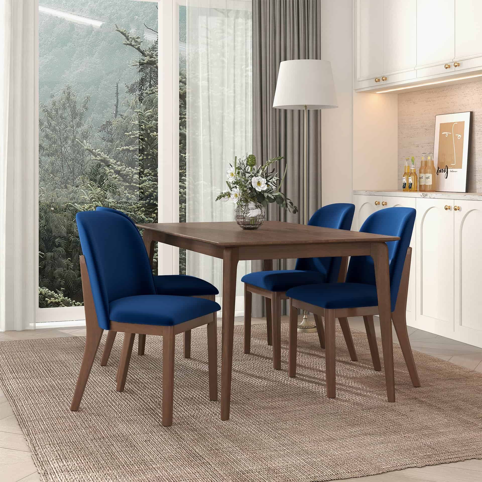 These dining chairs are a perfect blend of Mid-Century Modern design and contemporary style. With their solid wood legs, these chairs add a touch of elegance to any living room or dining area. Crafted with comfort in mind, they provide a cozy seating experience for long hours of dining or entertaining guests. Built to last, these chairs are made from durable materials, ensuring longevity even with everyday use. The versatile design makes them suitable for various settings, whether in a kitchen, chic apartment, loft, or condo. The high-quality craftsmanship guarantees a reliable and sturdy seating option for years to come. Not only do these chairs offer exceptional quality, but they are also affordable, making them an excellent choice for those seeking both style and value. The blue velvet upholstery adds a touch of sophistication, effortlessly blending with any existing decor. Upgrade your dining experience with these comfortable, durable, and stylish dining chairs.