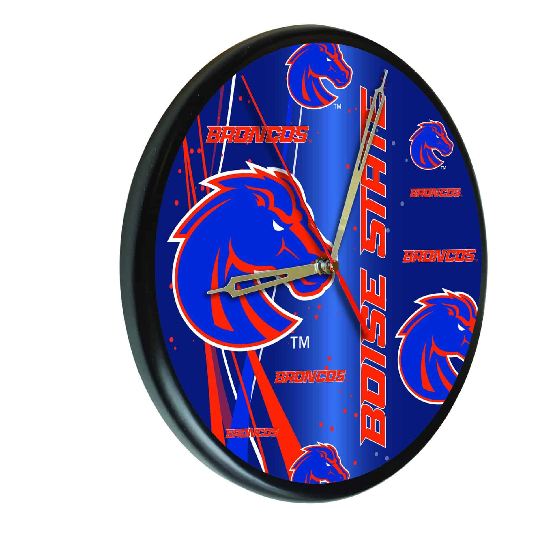 The Boise State University 13-Inch Solid Wood Clock in Black is an ideal addition to any man cave, showcasing your school pride while keeping accurate time. This officially licensed clock features first surface, digitally printed graphics using UV inks that resist fading over time. With its accurate quartz movement powered by a single AA battery (not included), this clock combines functionality with style. The recessed keyhole hanger allows for easy mounting on the wall, ensuring a clean and polished look. Perfect as a gift for graduates, sports fans, or yourself, this clock is a statement piece that elevates any space.