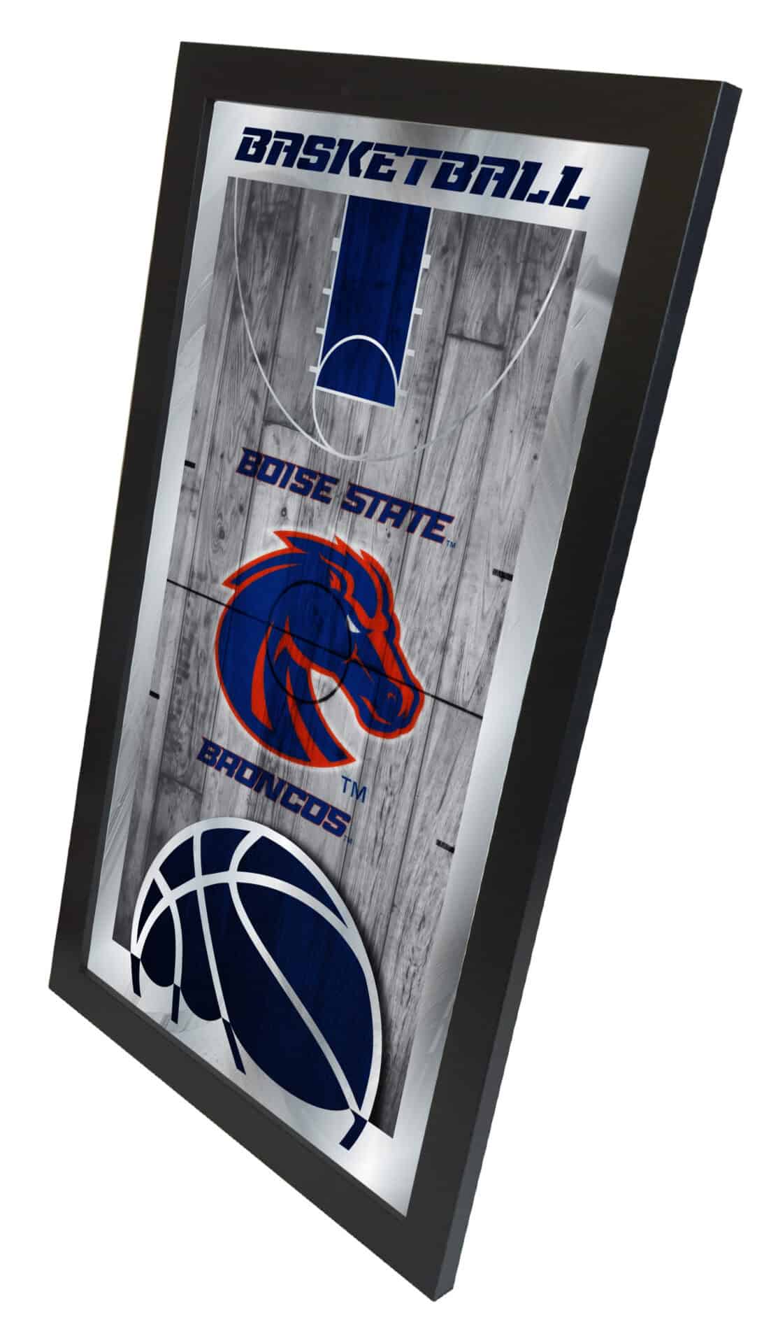 Show your school pride with this Official Licensed Basketball Mirror. With its simple yet elegant design, vibrant colors burst through the 1/8″ thick glass and are beautifully highlighted by mirrored accents. The mirror is framed with a black, 1 1/4″ wrapped wood frame and features dual saw tooth hangers for easy installation. Measuring 15″ (H) x 26″ (W), this mirror is perfect for your office, garage, or any room in your home. Whether for yourself or as a gift for a recent graduate or sports super fan, this mirror guarantees satisfaction.