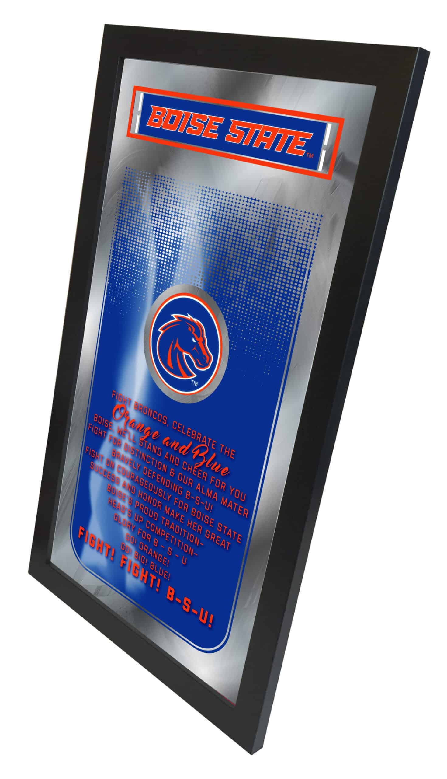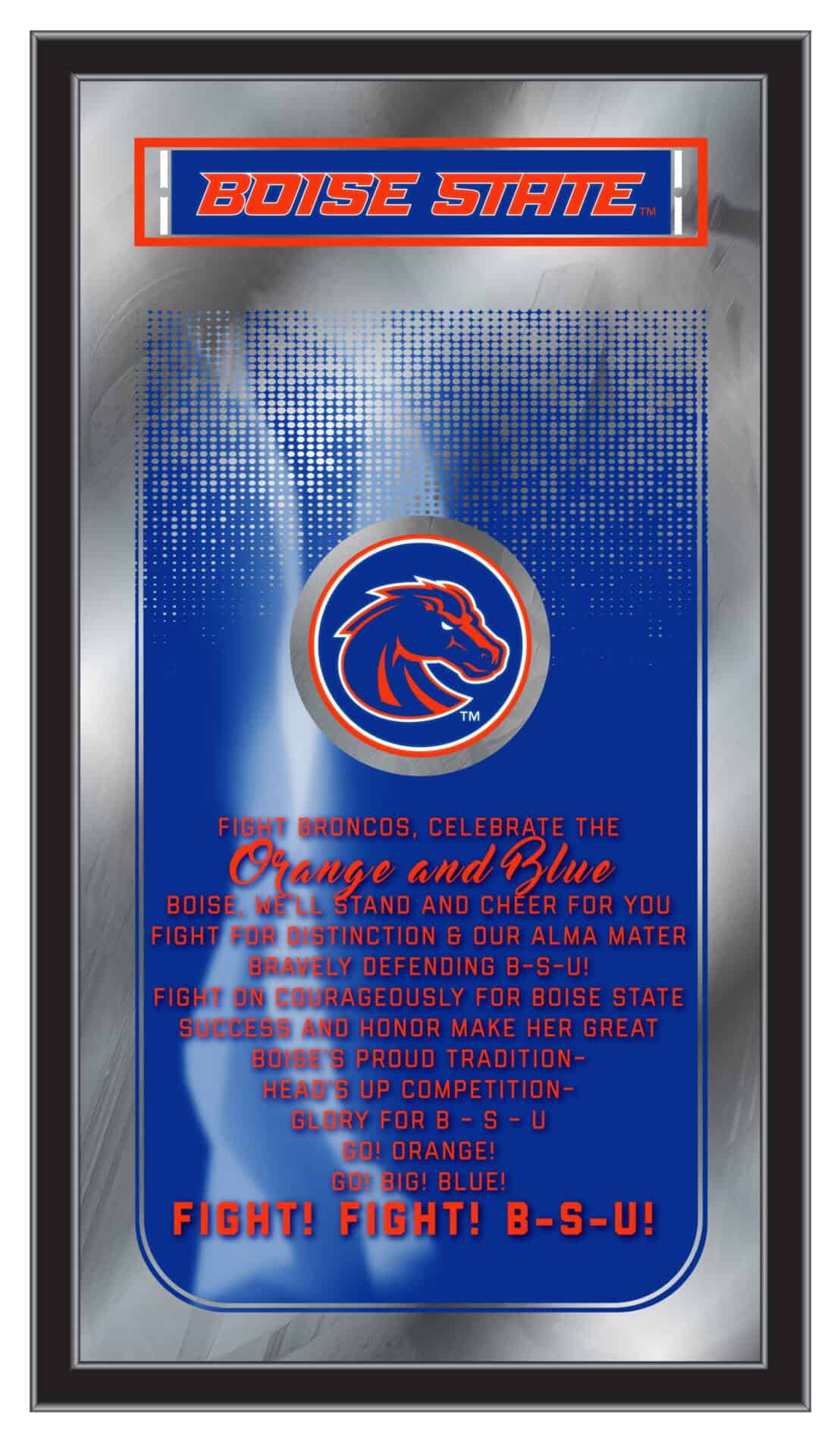The perfect way to show your school pride, our Fight Song Mirror displays your school’s logo and the verses that get them fired up on game day, with a style that fits any setting. With its simple but elegant design, colors burst through the 1/8″ thick glass and are highlighted by the mirrored accents. Framed with a black, 1 1/4 wrapped wood frame and saw tooth hangers, this mirror is ideal for your office, garage, or any room of the house. Whether purchasing as a gift for a recent grad, sports super fan, or for yourself, you can take satisfaction knowing you’re buying a mirror that is proudly made in the USA.