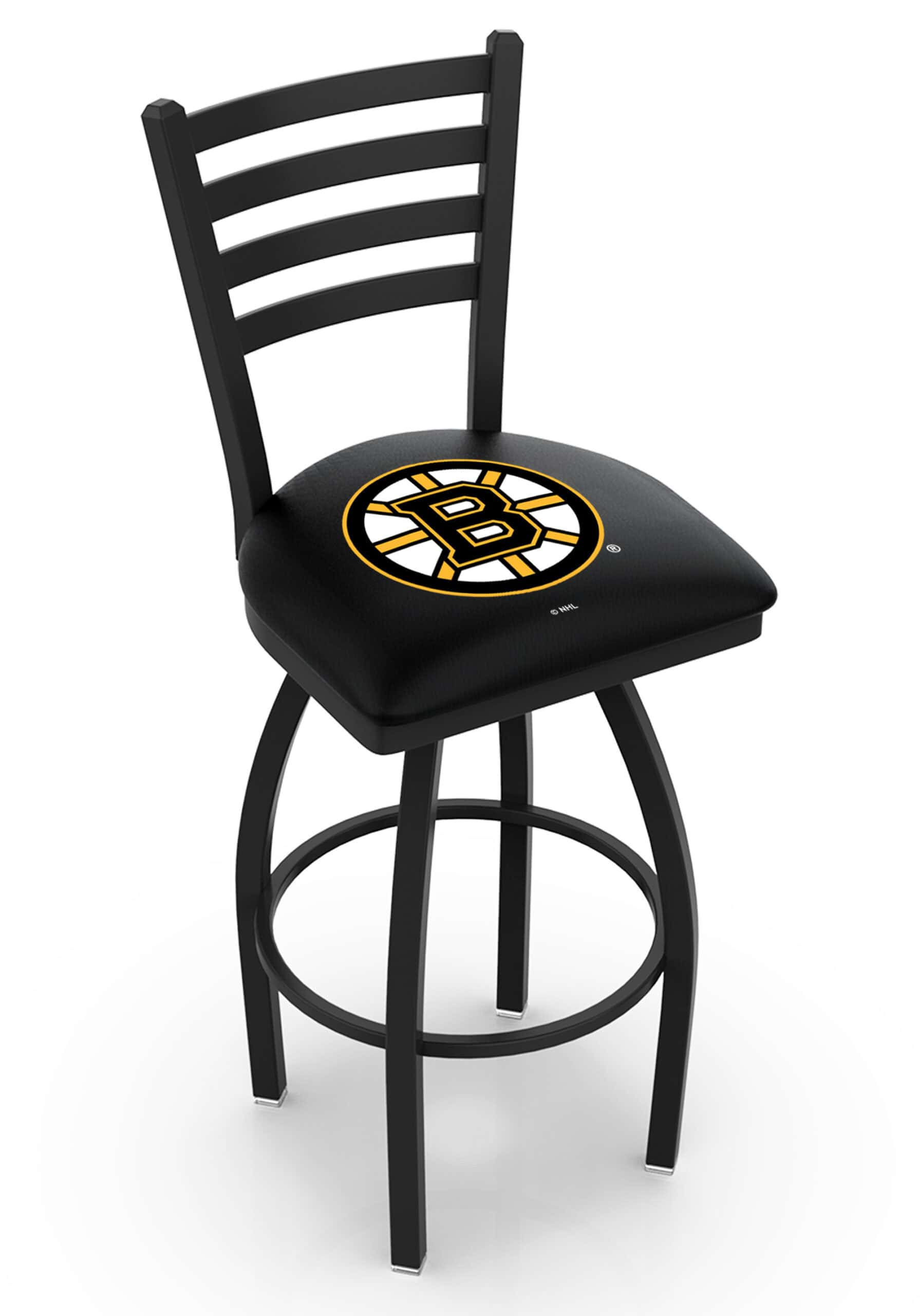 Elevate your bar, game room, or man cave with this high-quality 30-Inch Swivel Bar Stool featuring a sleek black wrinkle finish and a modern ladder back design. Combining comfort, durability, and style, this stool is perfect for showcasing your love for the Boston Bruins while ensuring a sophisticated look. With a sturdy steel construction, premium cushion seat, and smooth swivel functionality, this stool is built to last and provide exceptional seating comfort. The officially licensed logo is applied using a state-of-the-art printing process, ensuring a sharp and enduring image.