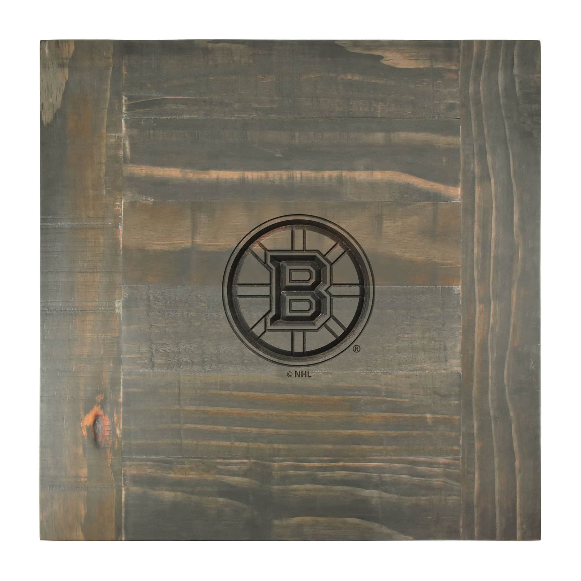 Bring some Boston Bruins spirit to your living space with this reclaimed side table. Crafted from solid pine wood, it’s the perfect spot to rest drinks and snacks in your fan cave or to add a touch of team pride to your living room. The burnt-in team logo ensures your loyalty is always on display.