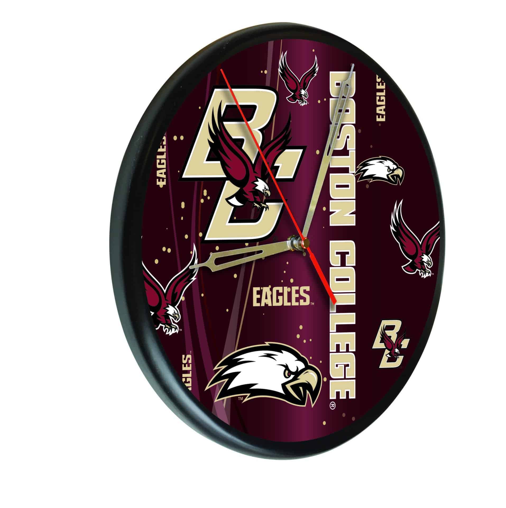 Our 13-Inch Solid wood clock is the perfect way to showcase your school pride. Featuring first surface, digitally printed graphics using UV inks that will not fade over time, this officially licensed clock is both stylish and durable. The accurate quartz movement ensures precise timekeeping and is powered by a single AA battery (not included). With a recessed keyhole hanger, the clock hangs flat against the wall for a clean, finished look. Ideal as a gift for recent graduates, sports enthusiasts, or for your personal space, this clock combines functionality with a touch of elegance.