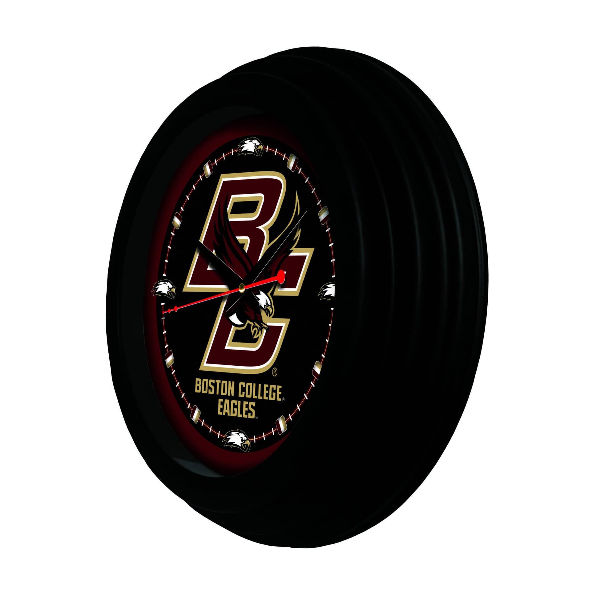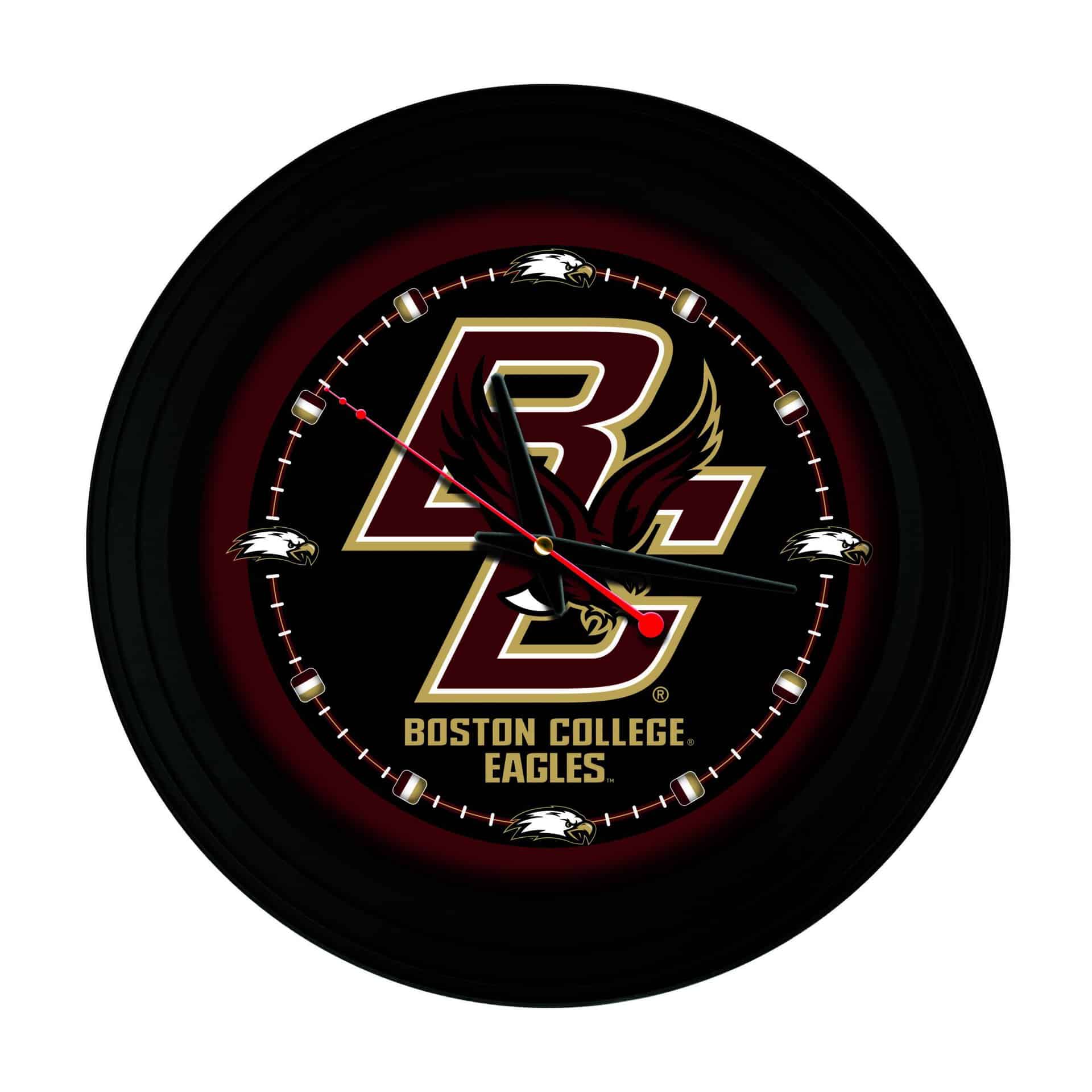 The Boston College 15-Inch Wall Clock in Black is an ideal addition to any man cave, showcasing your school pride with style. This clock features vibrant, full-color graphics protected by a durable glass lens, ensuring that the design remains pristine over time. The accurate quartz movement provides reliable timekeeping, powered by a single AA battery (not included). With a recessed hanger, the clock mounts flush against the wall, creating a sleek and polished appearance. Perfect as a gift for graduates, sports enthusiasts, or for personal use, this clock combines functionality with a spirited touch.