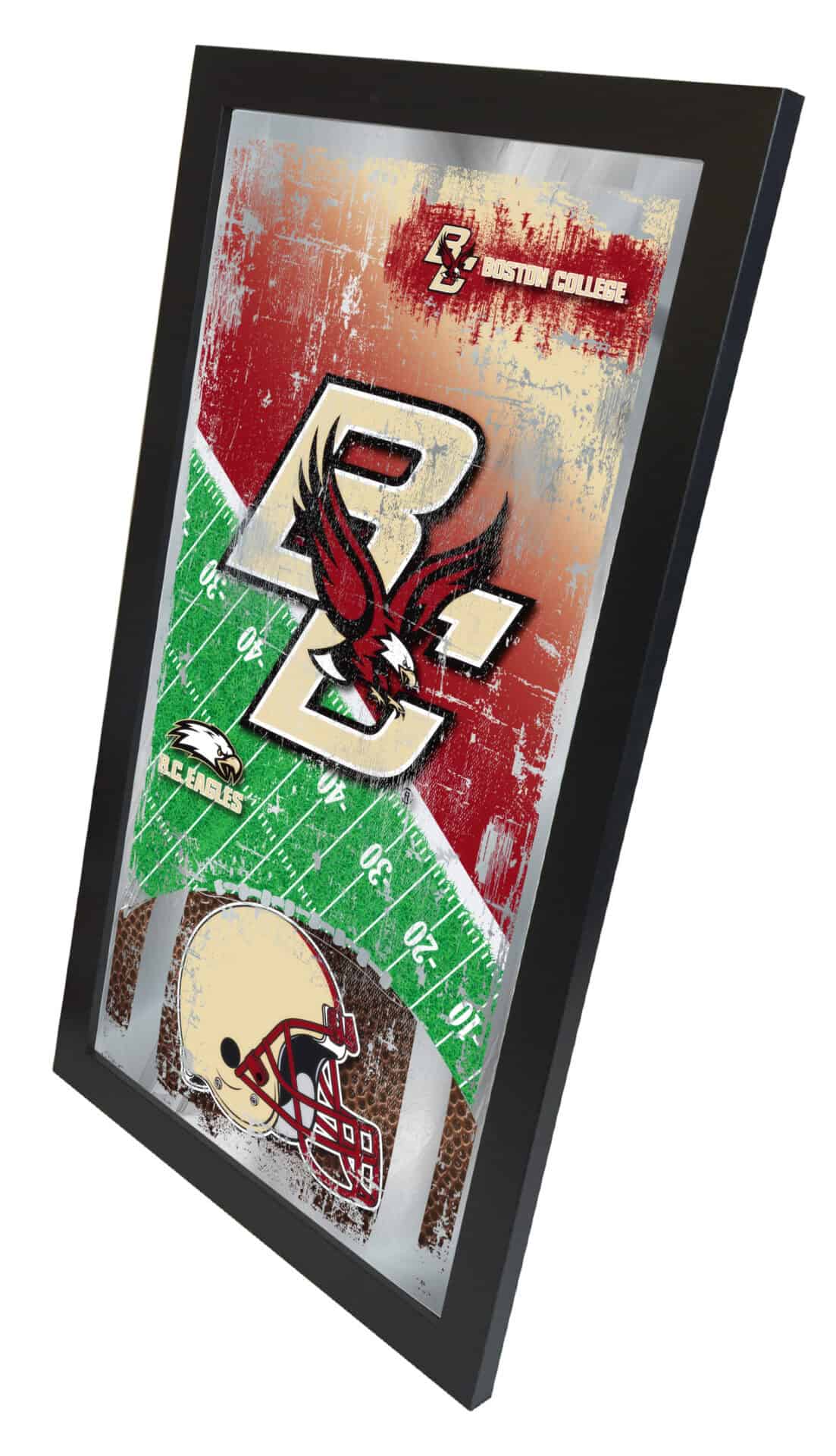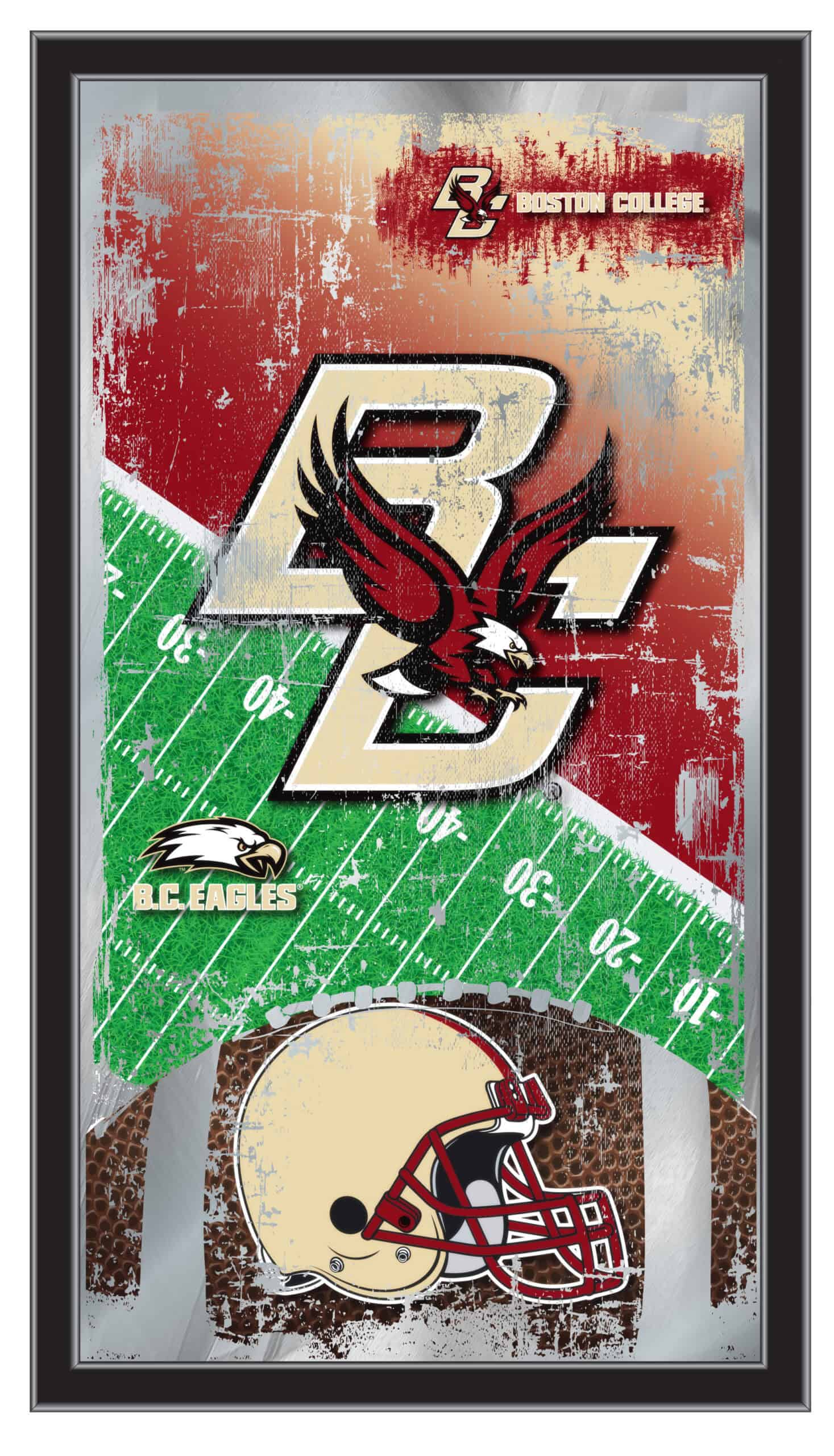 Show your school pride with this Official Licensed Football Mirror. With its simple yet elegant design, vibrant colors burst through the 1/8″ thick glass, enhanced by mirrored accents. Framed in a sleek black, 1 1/4″ wrapped wood frame, this 15″(H) x 26″(W) mirror is perfect for your office, garage, or any room in the house. Whether you’re purchasing it as a gift for a recent grad, a sports super fan, or for yourself, you can take satisfaction in knowing you’re getting a mirror that is proudly made in the USA.