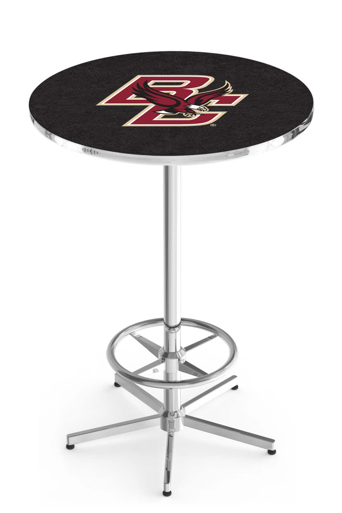 Elevate your bar, game room, or man cave with this premium 42-inch pub table featuring a 36-inch top, a star base, and a sleek chrome finish. Designed for durability and style, this table is built with high-quality materials to withstand years of use while maintaining its polished appearance. The sublimated, full-color laminate top is scratch-resistant and easy to clean, providing a vibrant surface that enhances any space. The triple chrome-plated base ensures exceptional stability, while adjustable floor glides accommodate uneven surfaces with ease. Simple assembly makes this table a convenient and stylish addition to any space.