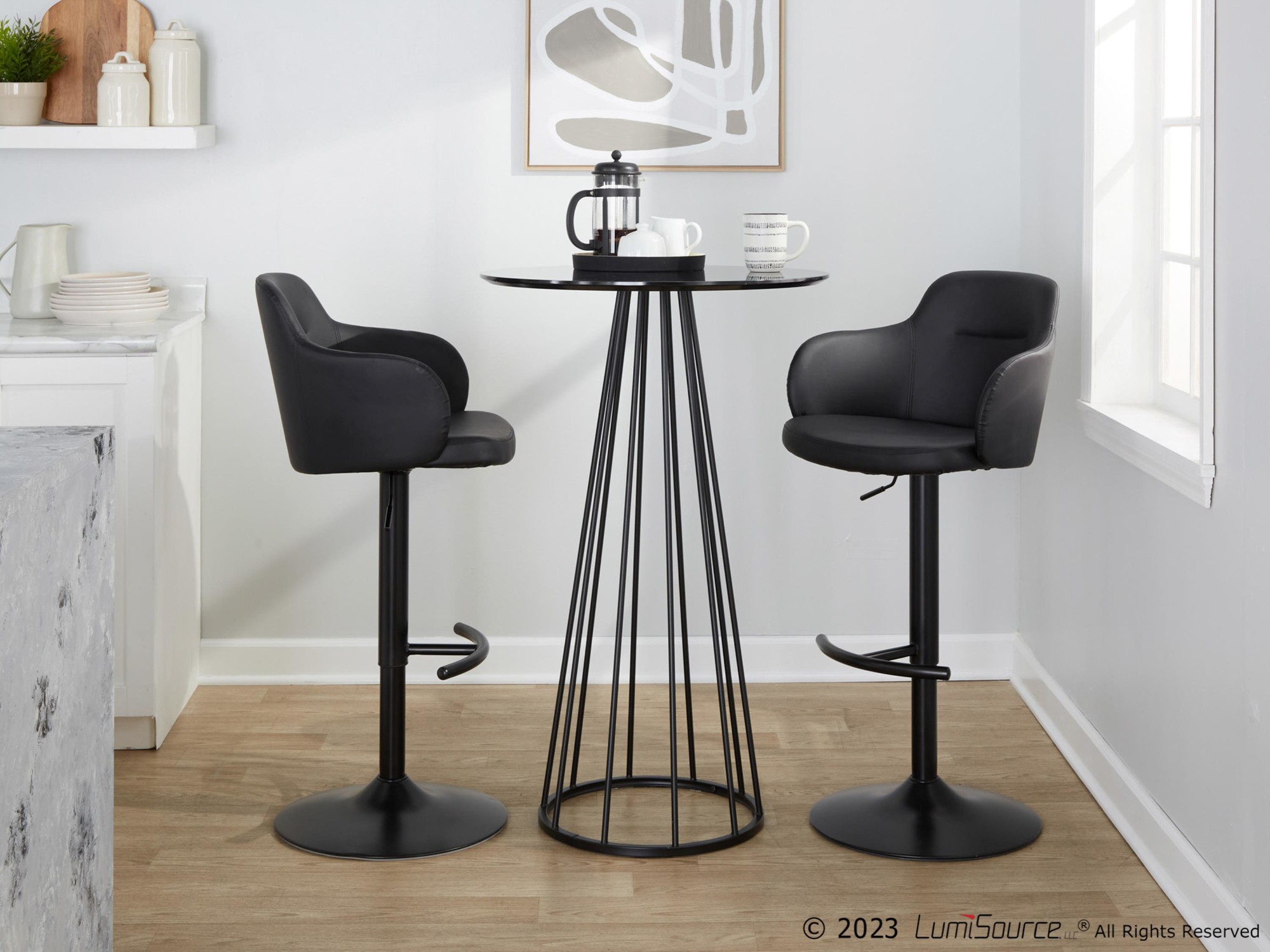The Boyne Adjustable Barstool combines contemporary charm with a comfortable design. This stylish barstool features an upholstered, bucket-style seat and an adjustable metal base, complete with a built-in footrest. Sold in sets of two, they’re a perfect addition to any modern space. Enjoy the 360-degree swivel and adjustable height for customized comfort and style.