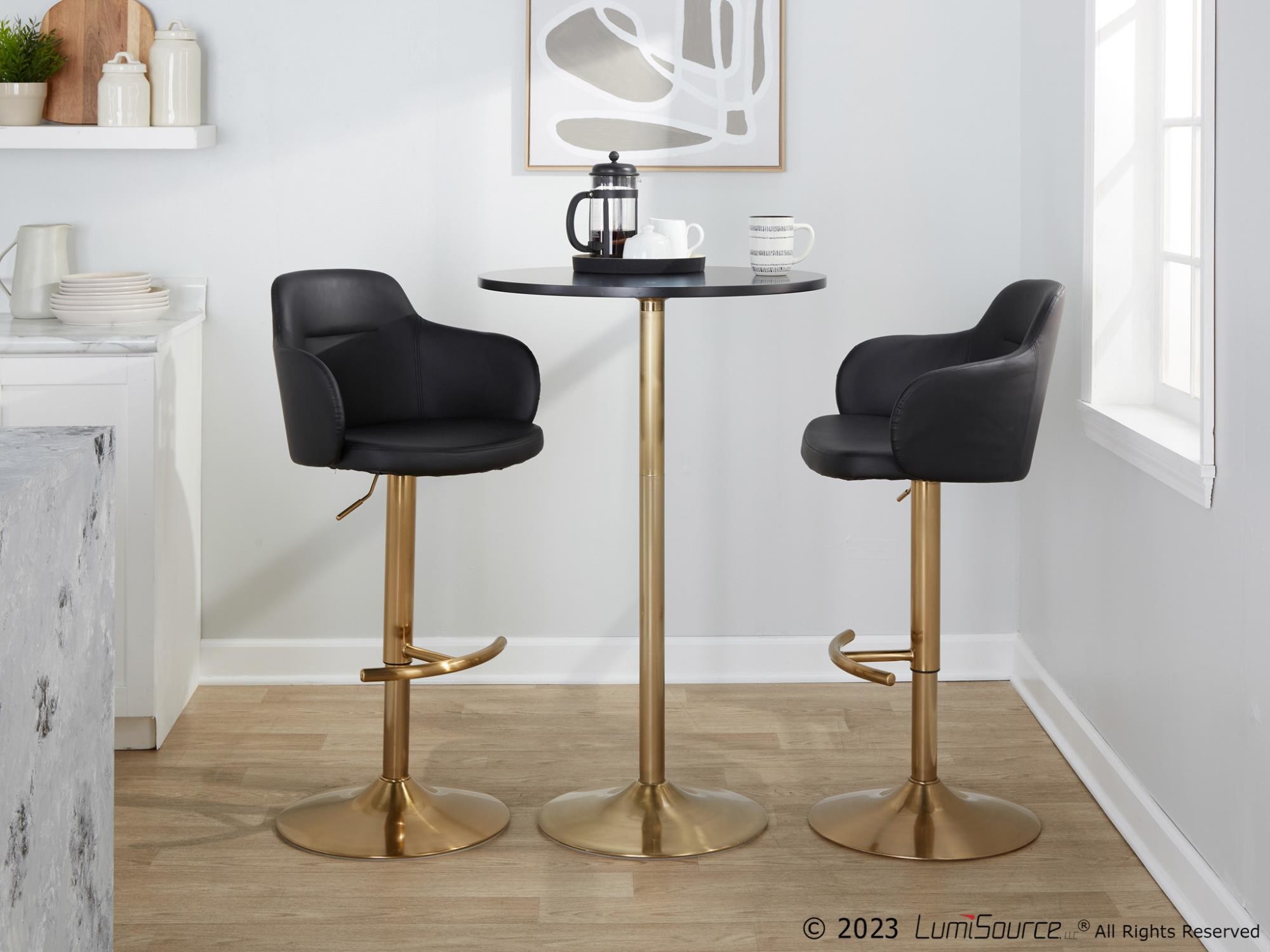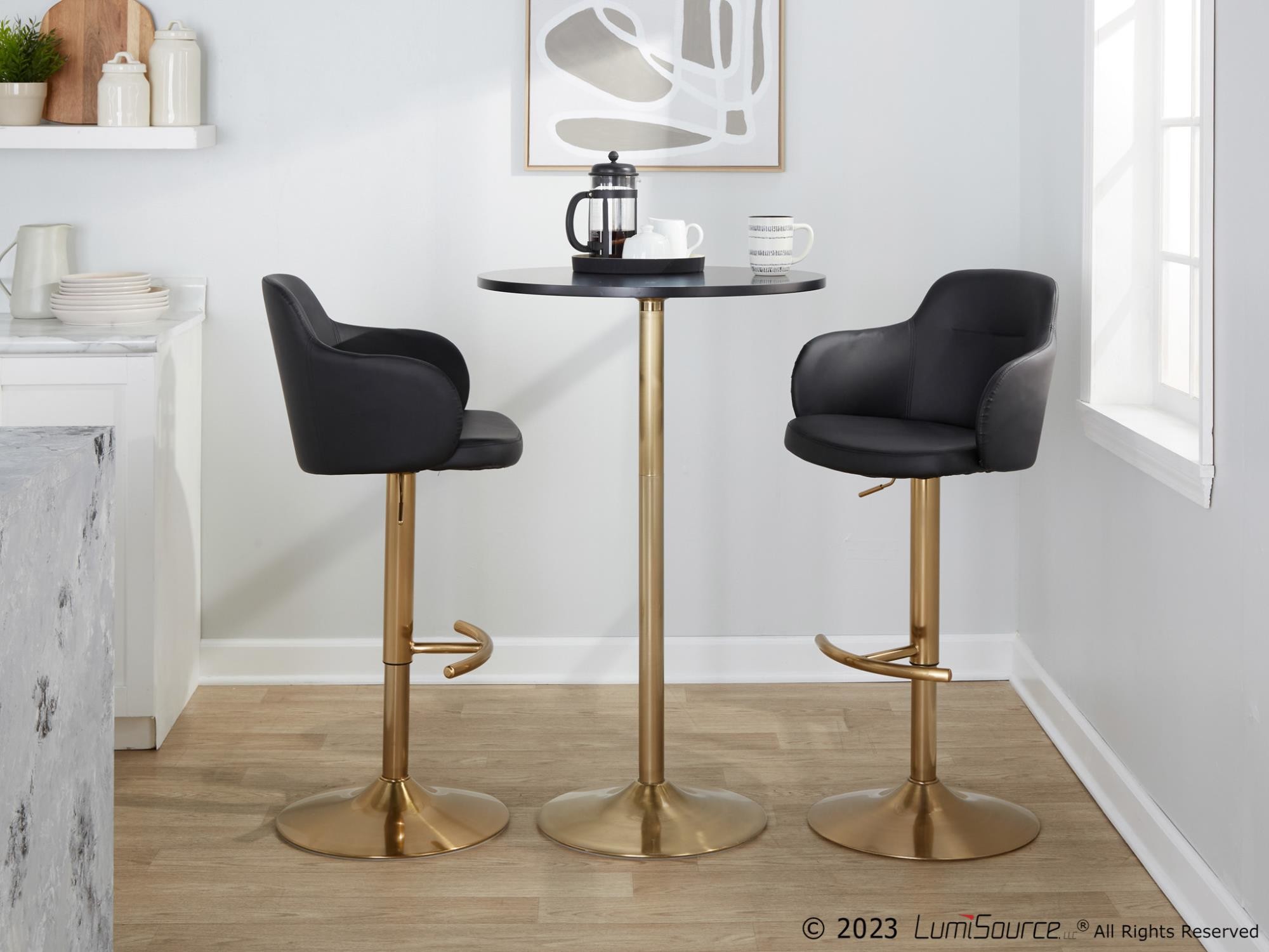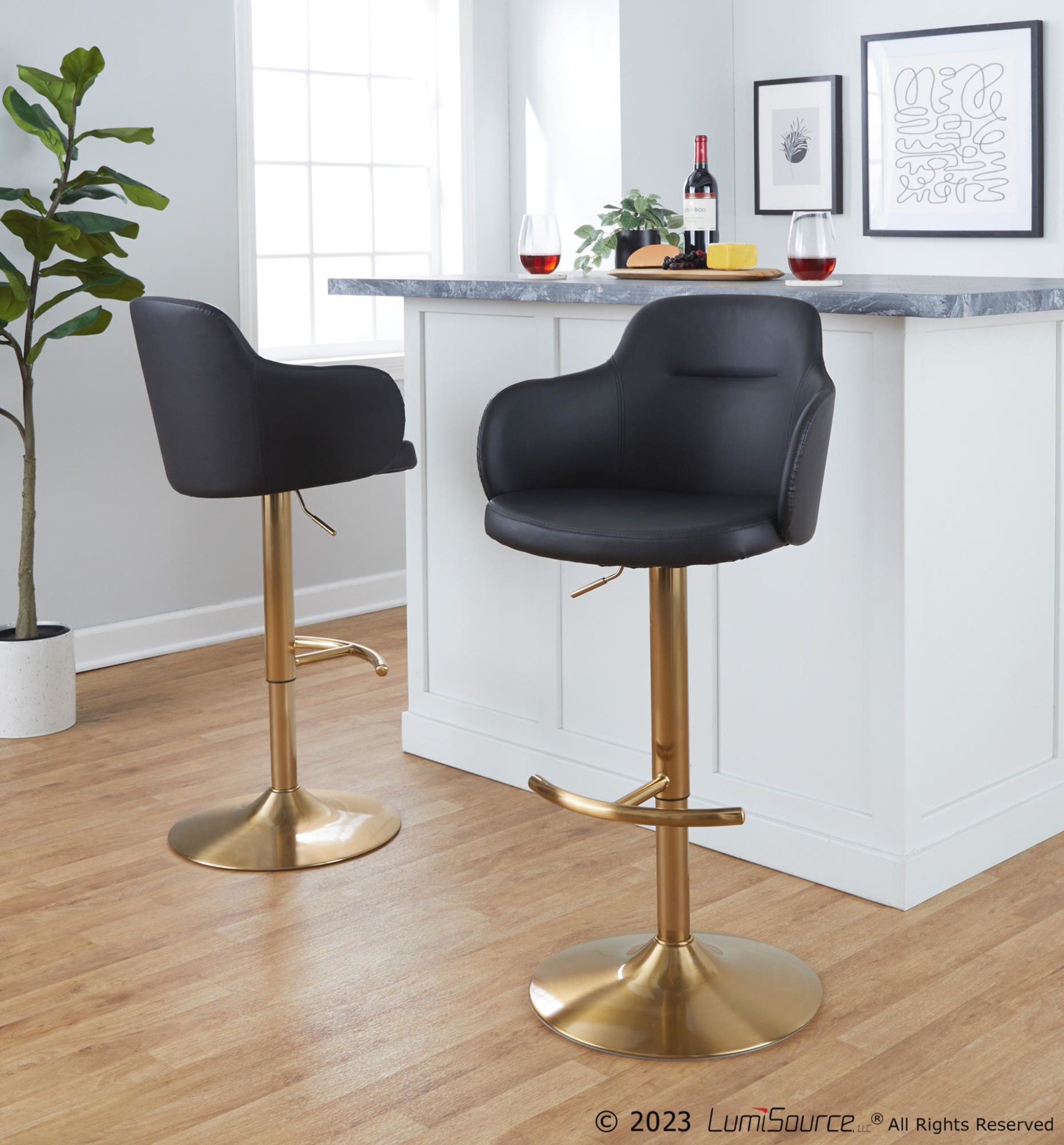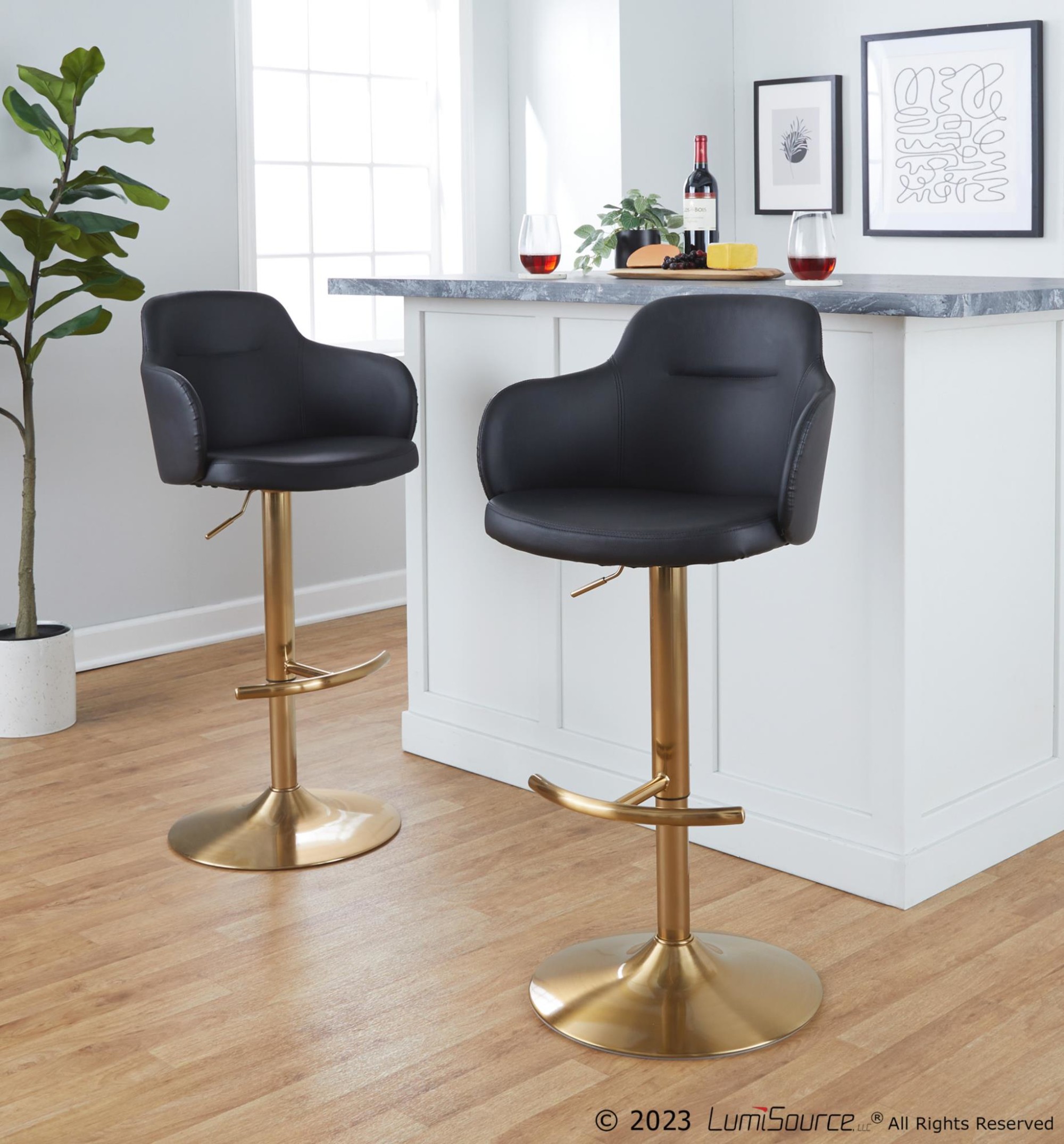 The Boyne Adjustable Barstools bring contemporary charm and comfortable seating to your space. These stylish barstools feature an upholstered, bucket-style seat and an adjustable metal base, complete with a convenient built-in footrest. Perfect for adding a touch of modern elegance to your bar area or kitchen island, these barstools are as functional as they are fashionable. Enjoy the comfort of the faux leather upholstery and the convenience of the adjustable height and swivel feature. Sold as a set of two.