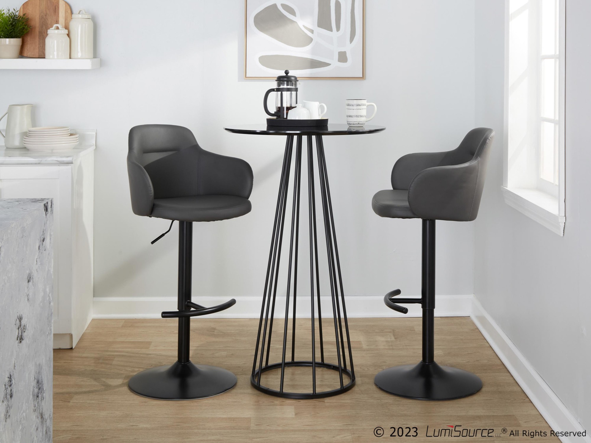 The Boyne Adjustable Barstools seamlessly blend comfort and contemporary style! These barstools feature a sleek, bucket-style seat upholstered in stylish faux leather. The adjustable metal base includes a built-in footrest for ultimate relaxation. Sold in sets of two, they’re ready to rev up your space!