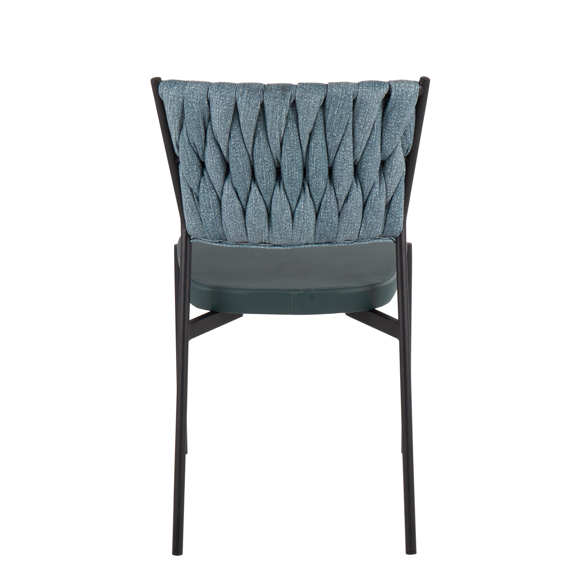 The Braided Tania Chair offers a contemporary design perfect for any dining area. These chairs feature unique “braided” fabric and faux leather upholstery, providing both style and comfort. The comfortable padded seat and backrest ensure a pleasant dining experience, while the sleek black metal legs add a touch of modern elegance. Sold in pairs, these chairs are an excellent choice for upgrading your dining space.