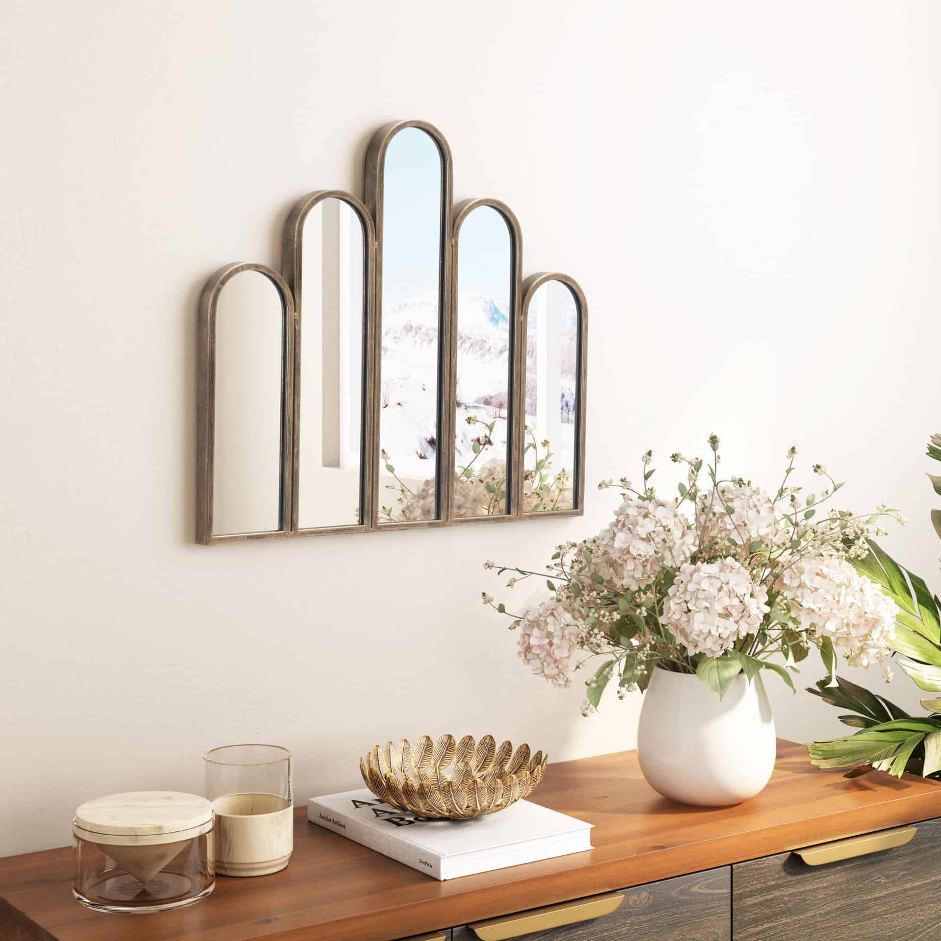 The Bronze Deco Wall Mirror with Powder Coated Steel Frame combines sleek design with functionality, making it the perfect accent for any man cave, entryway, living area, or bathroom. Its durable steel frame with a powder-coated finish ensures longevity, while the art deco shape adds a stylish touch to your space. With no assembly required, this mirror is ready to hang and will instantly elevate your decor.