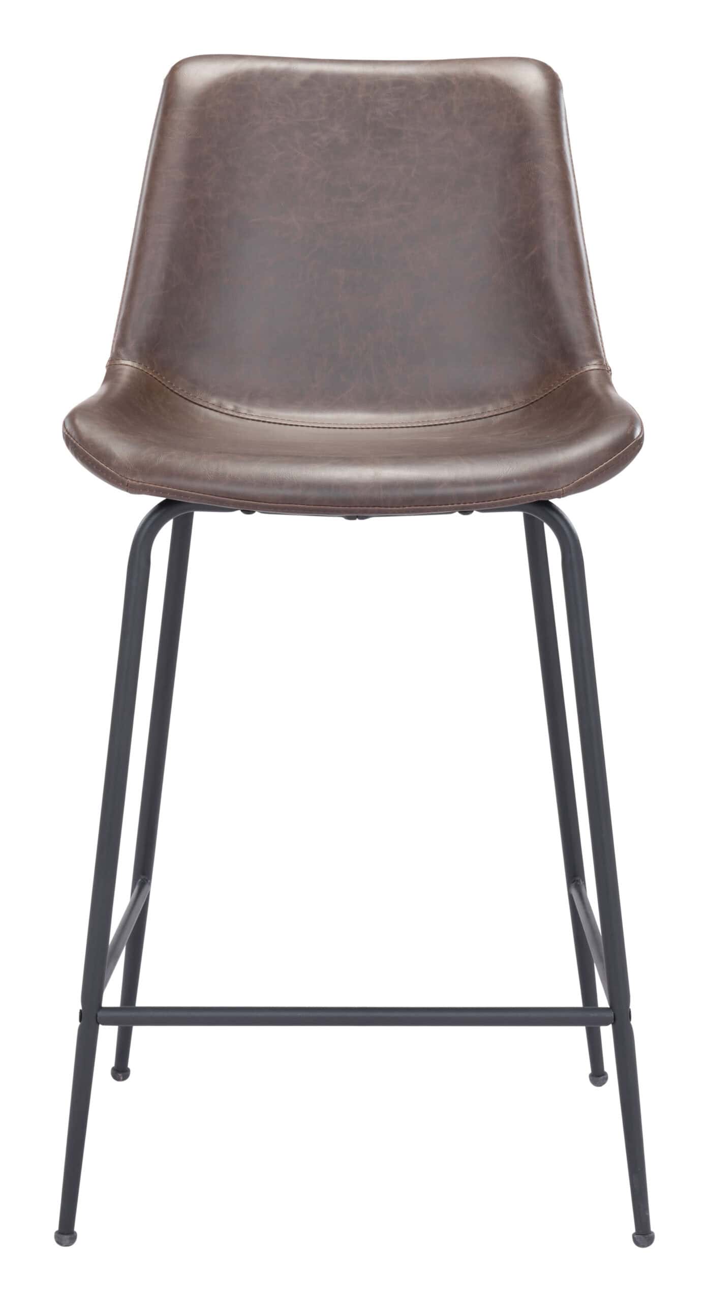 The Brown Faux Leather Counter Stool with Black Steel Legs brings a sleek, mid-century modern aesthetic to your home or man cave. Featuring a plush faux leather seat and a sturdy steel frame, this counter stool is both stylish and functional. The matte black finish on the legs adds a modern touch, while the built-in footrest provides added comfort. Perfect for kitchens, dining areas, or bar spaces, this stool is designed to withstand heavy use, making it ideal for both residential and commercial hospitality settings.