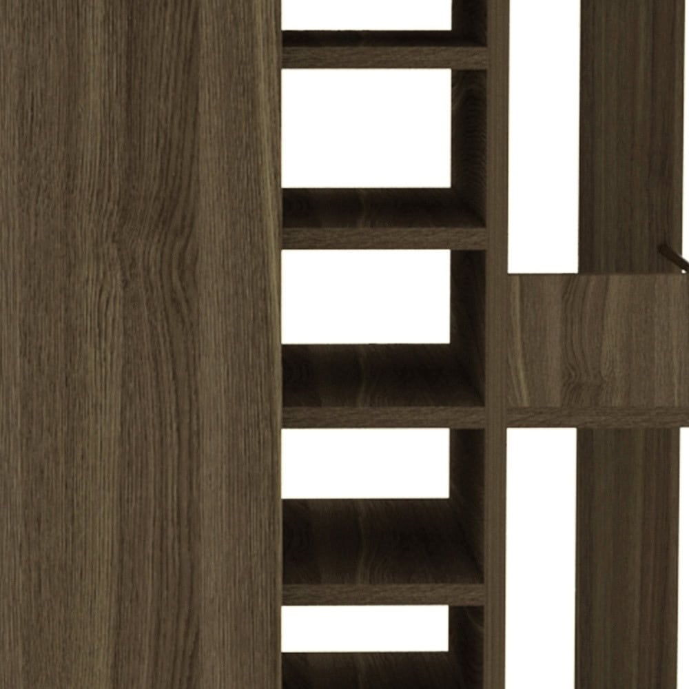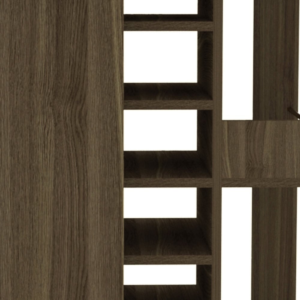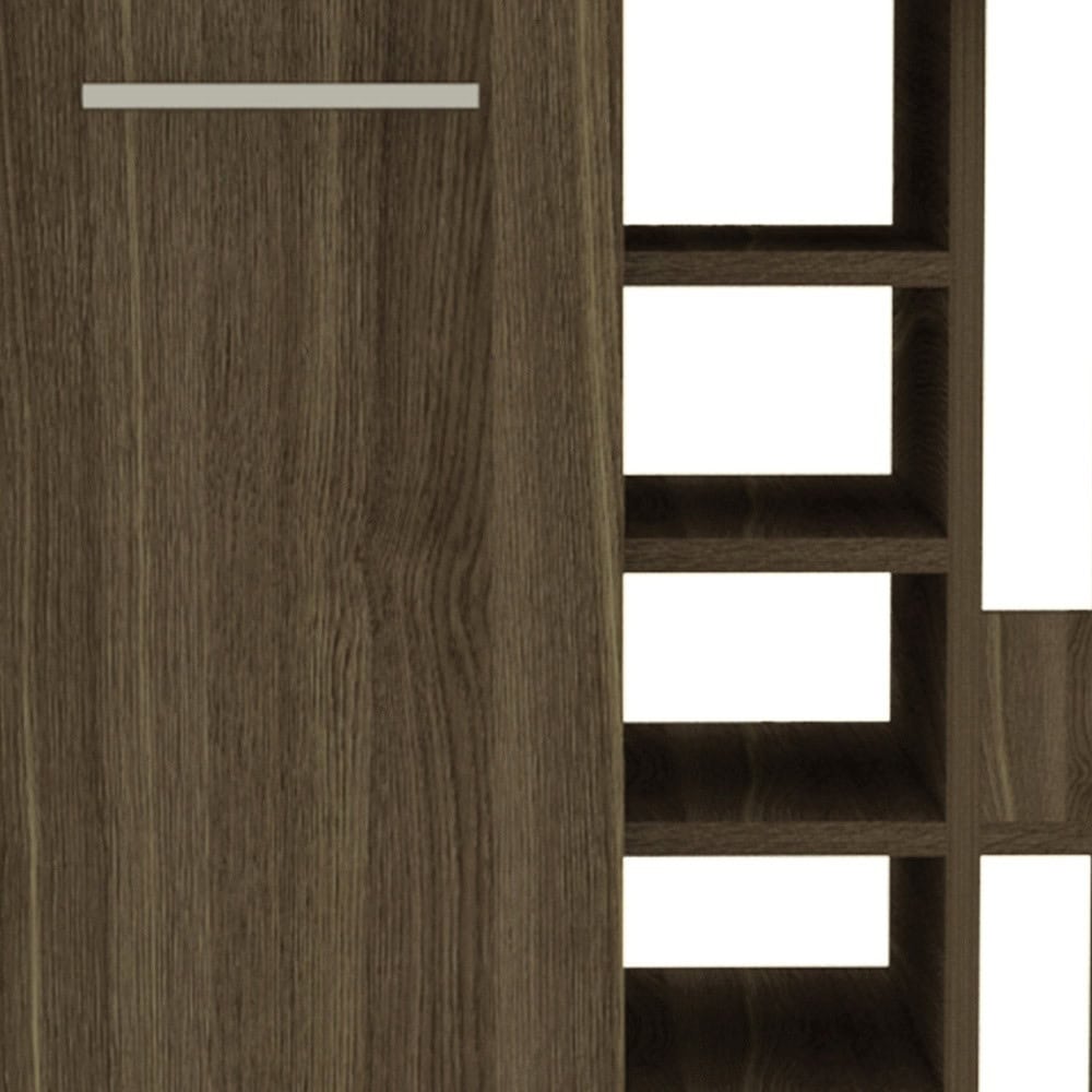 - Made of durable particle board with a contemporary brown color