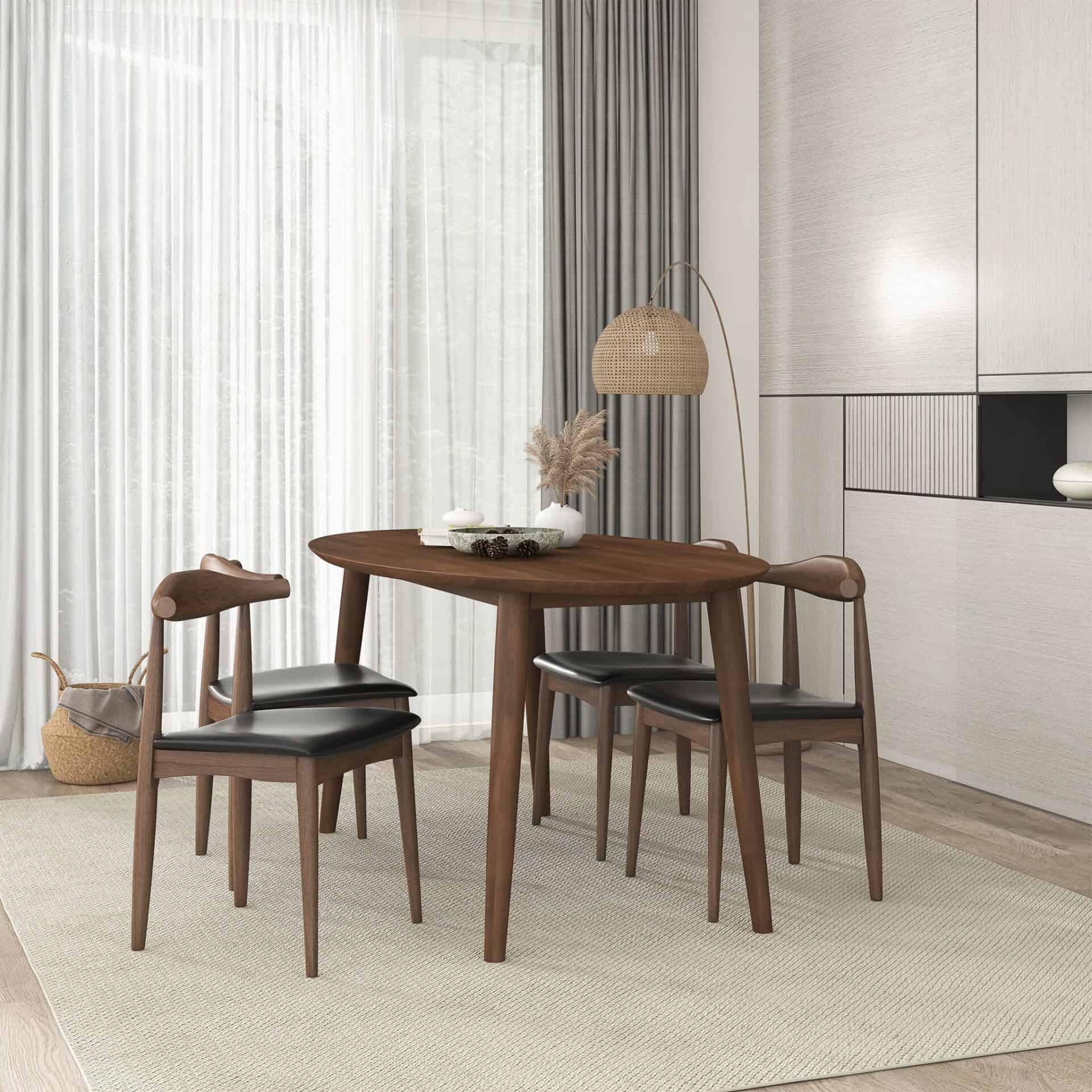 Give your dining room or kitchen a touch of elegance with these mid-century modern upholstered dining chairs. This set of two dining chairs features a durable solid wood frame and a high-density foam cushion, offering a stylish design along with superior comfort and back support. The chairs are easy to maintain, as they can be cleaned with a non-abrasive cleaning solution and a microfiber cloth. Minimal assembly is required, allowing you to quickly enjoy their timeless charm. Available in a classic brown color, these chairs are designed to complement a variety of interior styles.