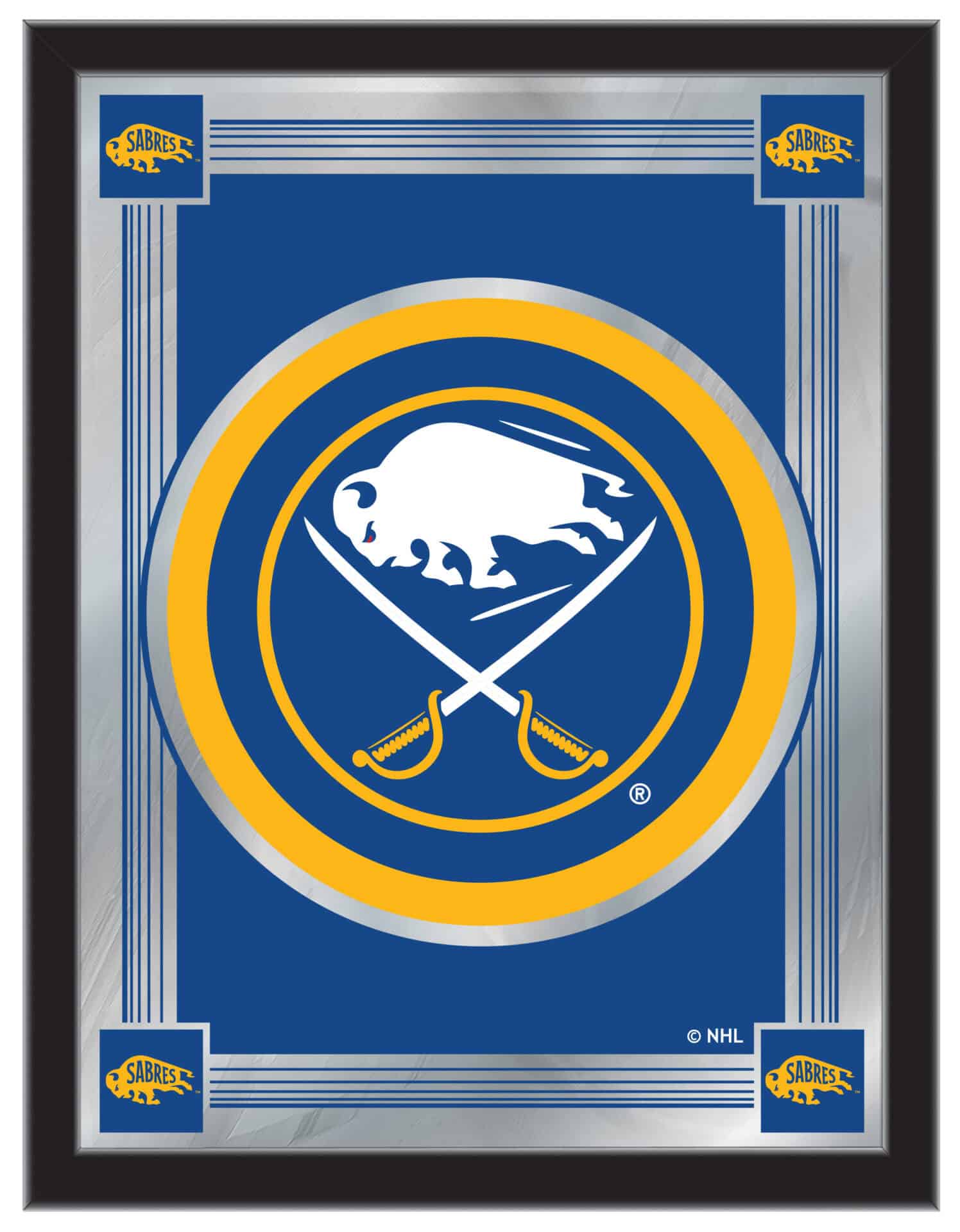 Show your team pride with this Official Licensed NHL Logo Mirror. Featuring a simple yet elegant design, the vibrant colors burst through the 1/8″ thick glass, enhanced by mirrored accents. The mirror is framed with a sleek black, 1 1/4″ wrapped wood frame and includes saw tooth hangers for easy installation. Measuring 17″ x 22″, this mirror is perfect for your office, garage, or any room in your home. Whether as a gift for a superfan or a treat for yourself, this mirror is a fantastic way to display your love for the game.