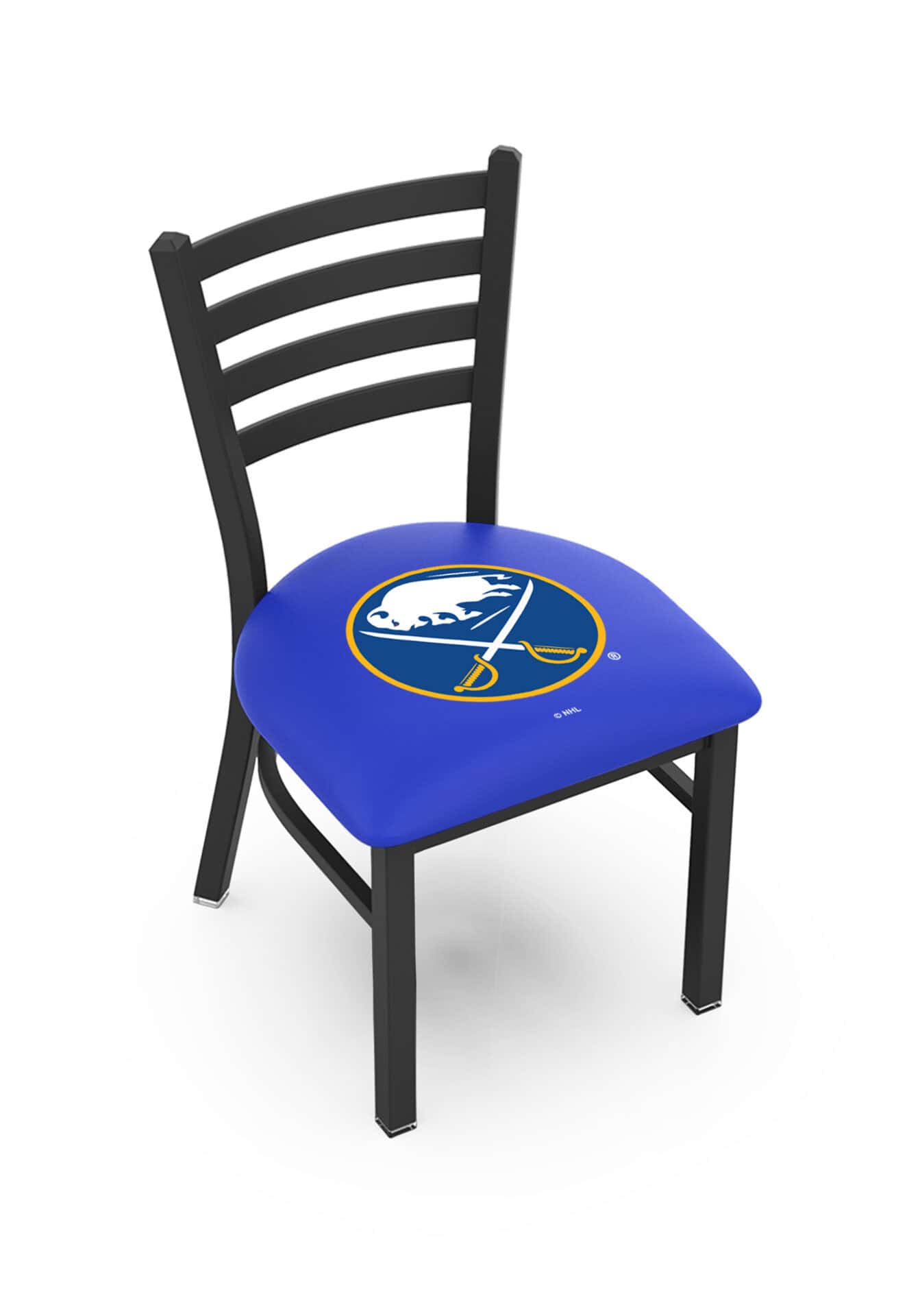 Upgrade your bar, game room, or man cave with the stylish and durable Buffalo Sabres 18-Inch Stationary Bar Chair. This chair features a sophisticated ladder back design, combining comfort with a sleek aesthetic. The officially licensed logo is vividly reproduced using a state-of-the-art printing process, ensuring sharp, clear, and long-lasting imagery. Constructed with a heavy-duty steel frame and premium-quality cushion materials, this bar chair is built to provide years of reliable use and support. Its powder-coated finish resists chips and scratches, maintaining a rich appearance over time. Fully assembled and ready to use, this chair is the perfect addition to showcase your team pride.