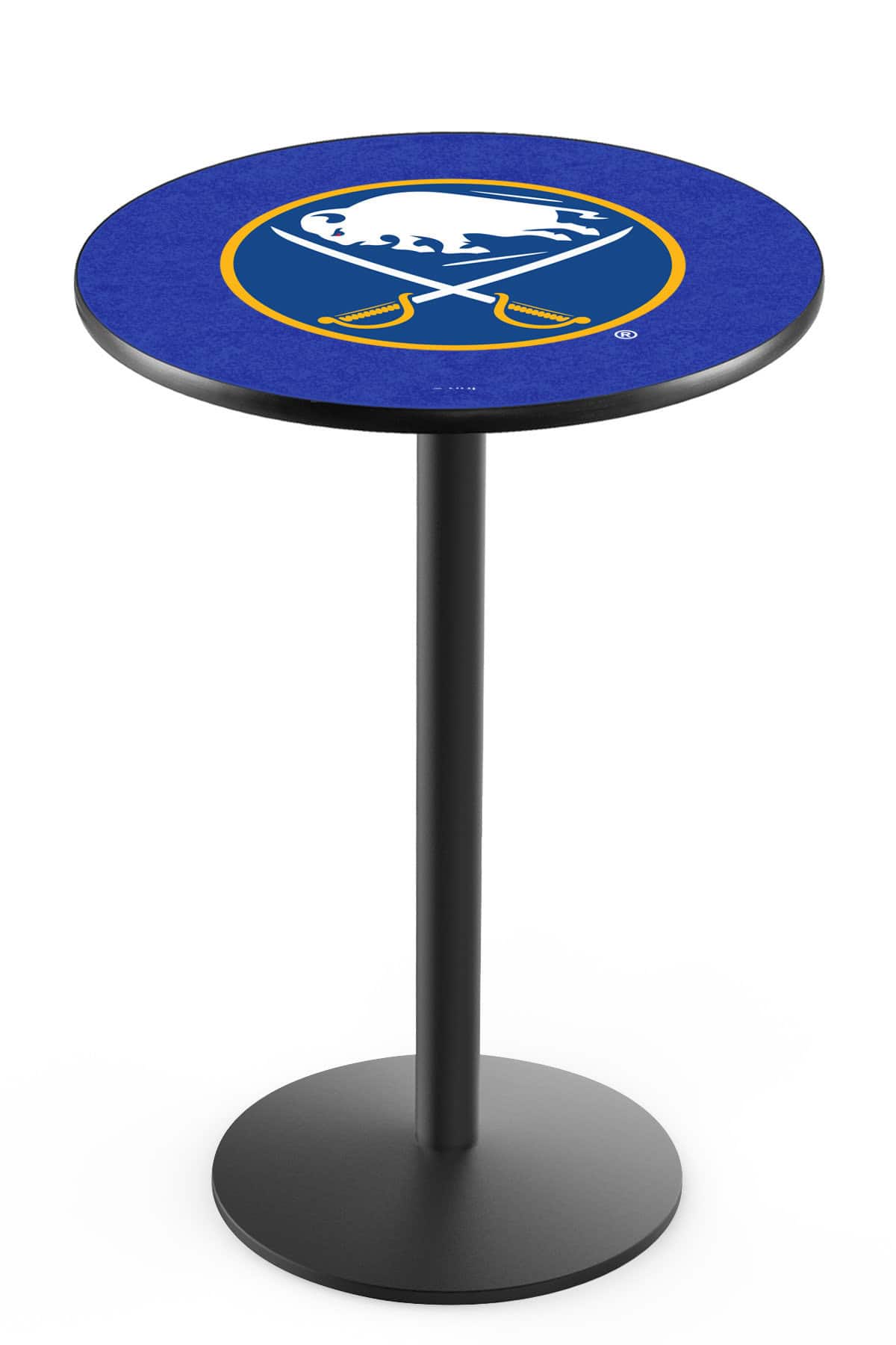 Upgrade your bar, game room, or man cave with this premium 36-inch pub table. Designed for the ultimate sports enthusiast, this table combines durability, style, and functionality, making it a centerpiece for any setting. The scratch-resistant laminate top offers vibrant, full-color detailing, ensuring long-lasting quality and an eye-catching design. The commercial-grade base with adjustable feet ensures stability on any floor surface, while the powder-coated black wrinkle finish adds a sleek, professional touch.