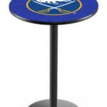 Enhance your bar, game room, or man cave with this stylish and durable 42-inch pub table. Designed to combine functionality and aesthetics, this table is built for the ultimate sports fan. Its scratch-resistant, full-color sublimated laminate top boasts a vibrant design that adds a touch of class to any setting. The sturdy, powder-coated black wrinkle base ensures long-lasting stability, while adjustable feet accommodate uneven floor surfaces. Easy to assemble and clean, this pub table is a perfect addition to your entertainment space.