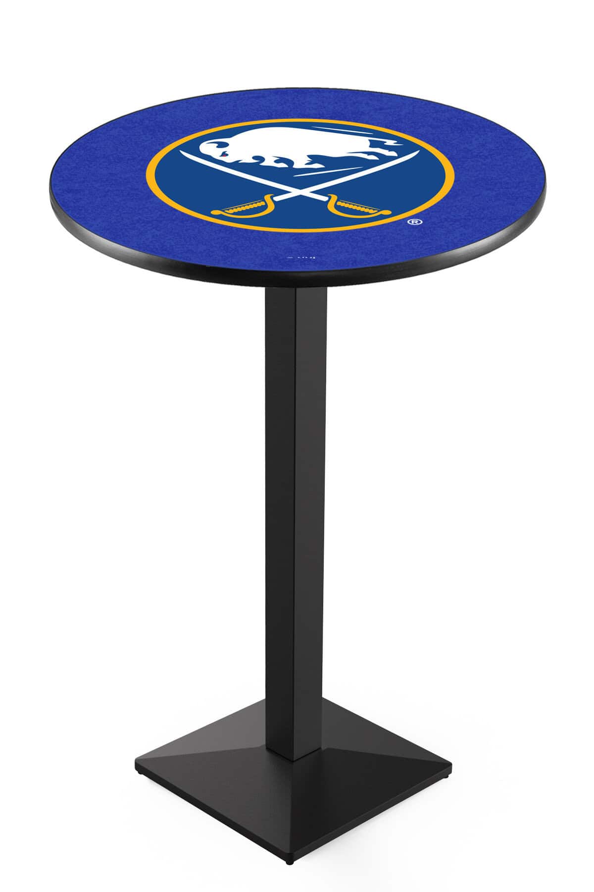 Enhance your bar, game room, or man cave with this stylish and durable pub table. Featuring a sleek black wrinkle finish and a vibrant, scratch-resistant laminate top, this table is designed to elevate any space while showcasing your team spirit. The commercial-grade materials and sturdy construction ensure long-lasting use and stability, making it a great addition to your home or entertainment area.
