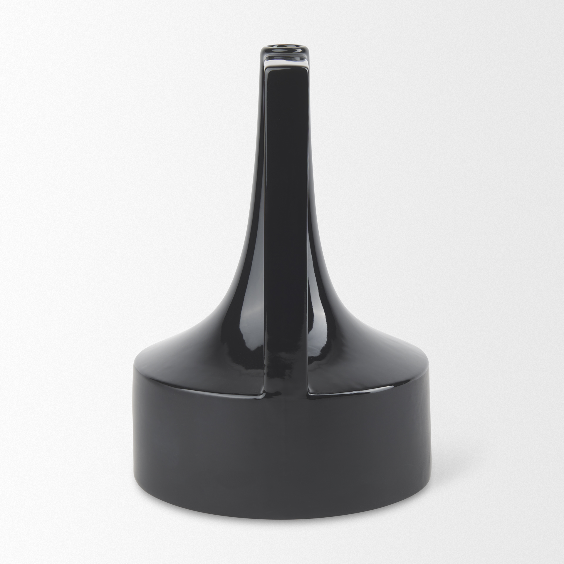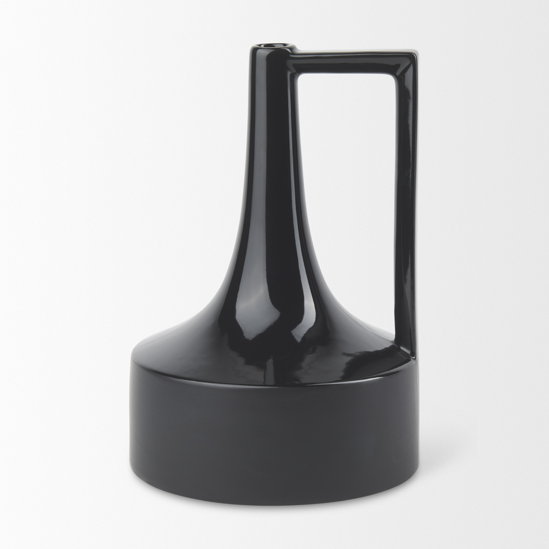 Burton 13.1H Large Glossy and Matte Black Ceramic Jug Vase