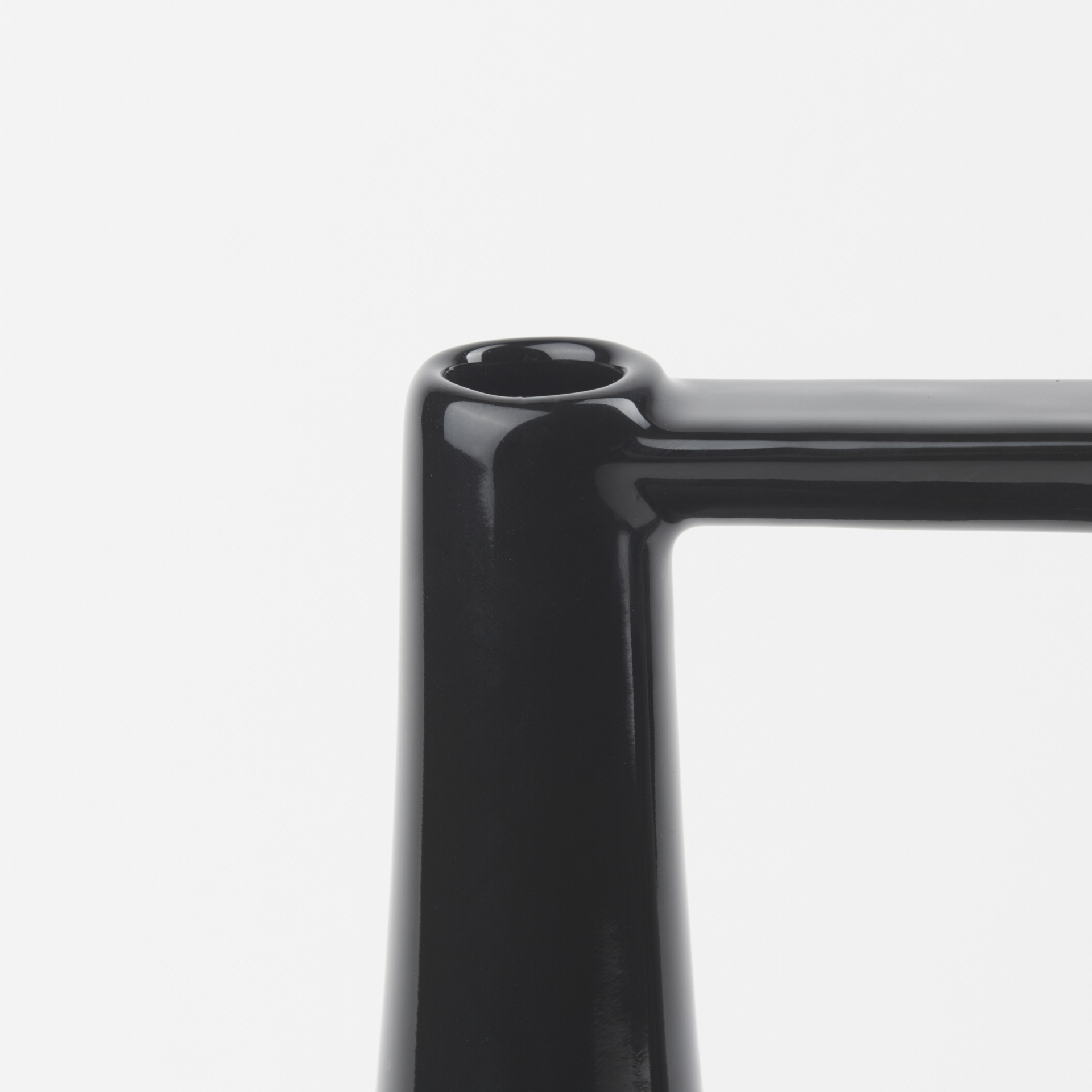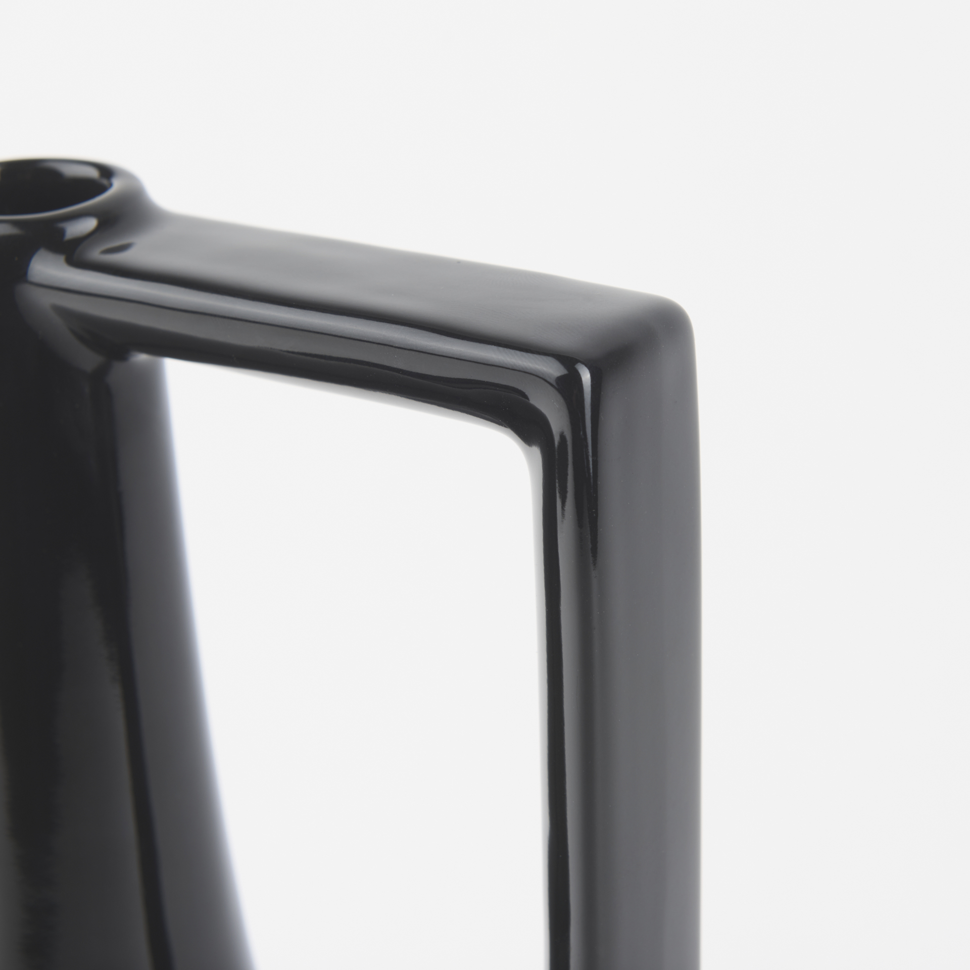 This large ceramic jug vase features a striking combination of glossy and matte black finishes. The unique design adds a touch of modern elegance to any space. Perfect as a standalone piece or combined with others from the same series.