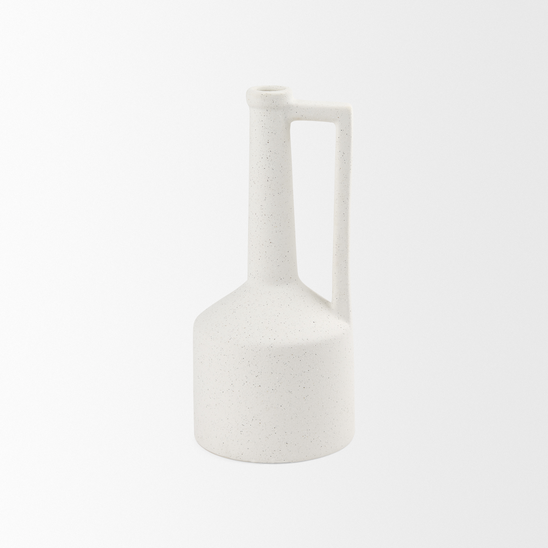 Unleash your inner designer with this medium ceramic jug vase! Boasting a textured, speckled matte white finish, this piece adds a touch of refined rusticity to any space. Its versatile style allows it to stand alone as a statement piece or integrate seamlessly into a curated collection. Get ready to elevate your decor!