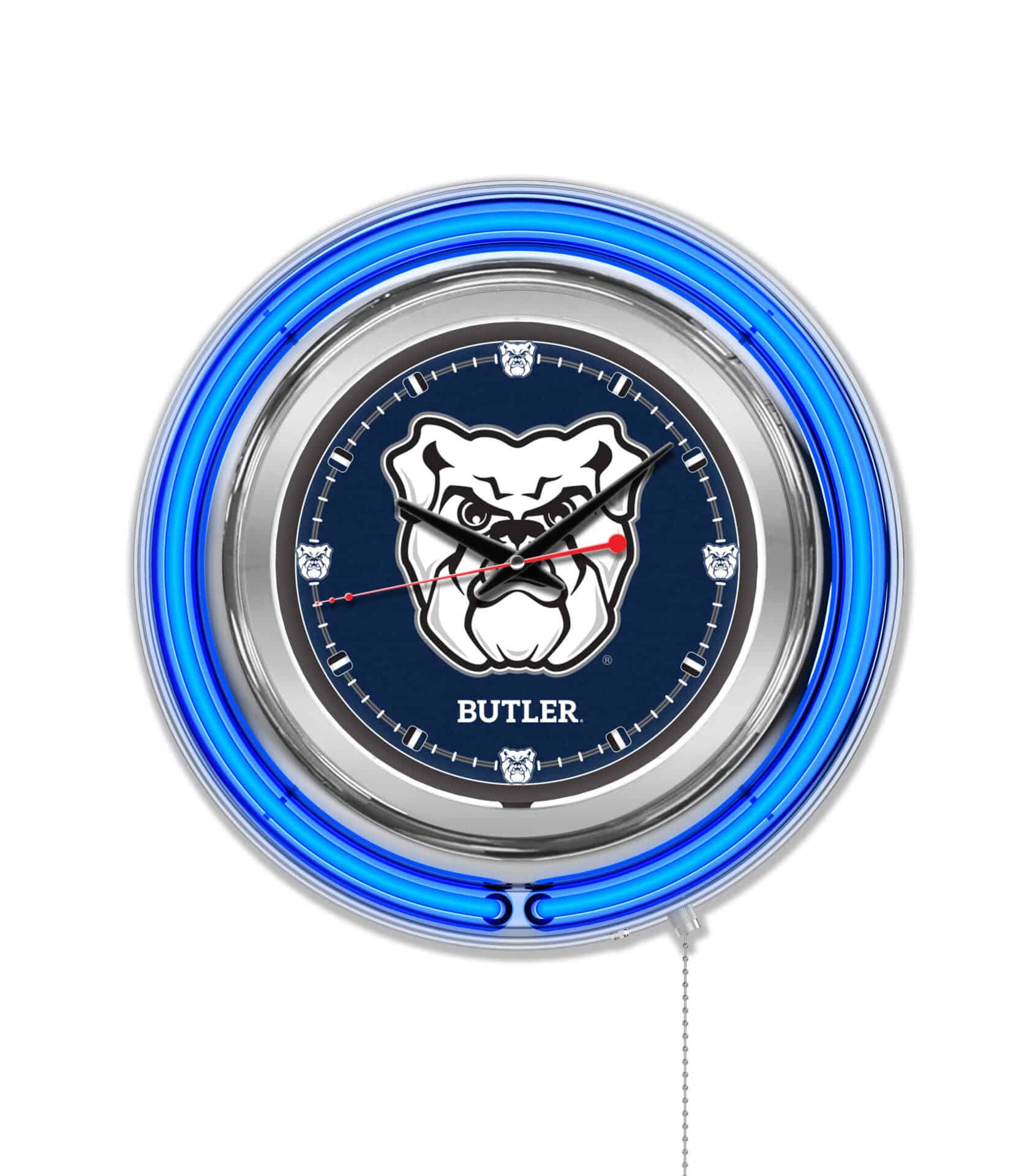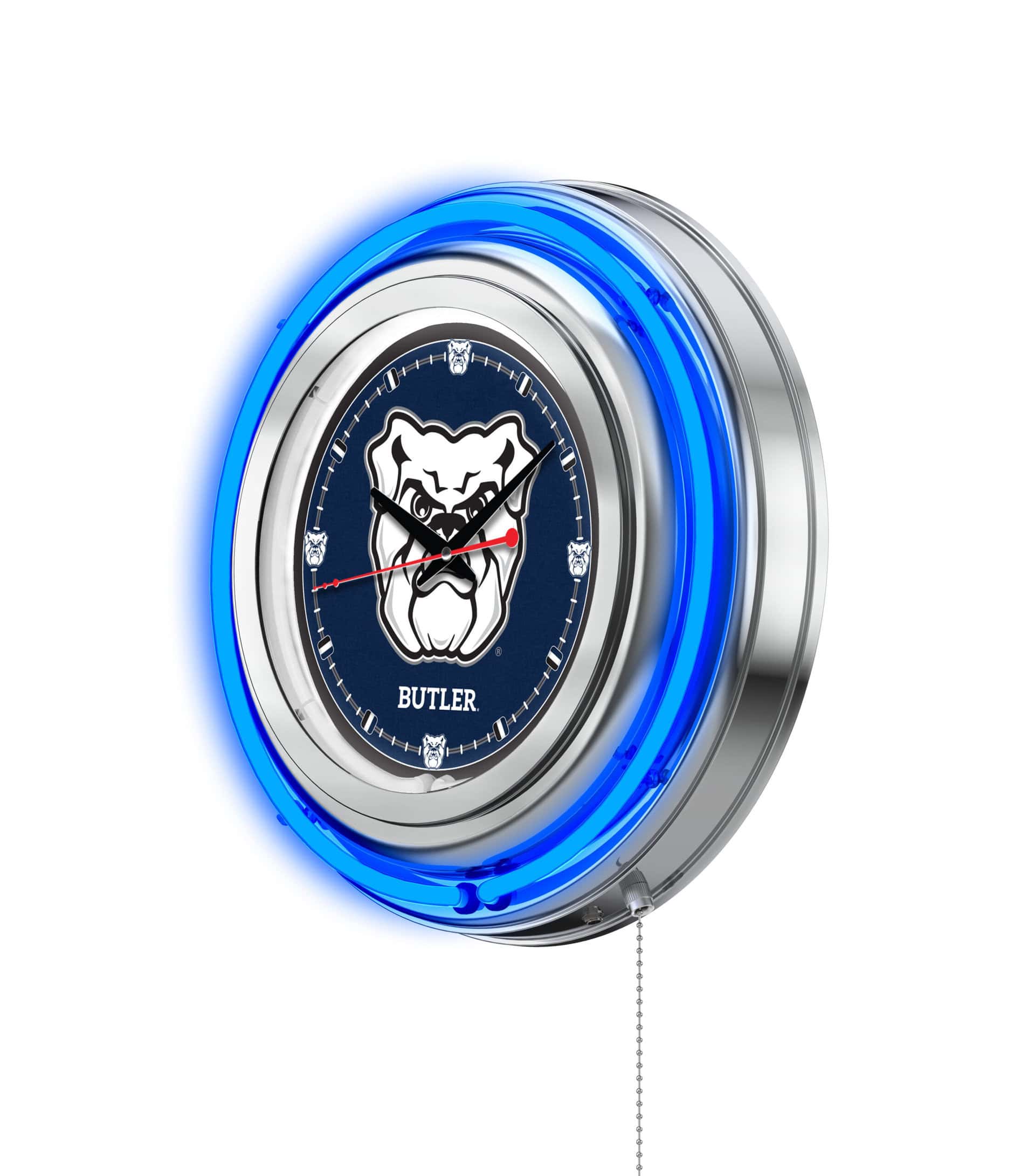 Showcase your school pride with the 15-Inch Neon Logo Clock, a stunning addition to any man cave or home decor. This clock features a sleek chrome casing and a vibrant neon outer ring in team-specific colors, complemented by a custom-printed clock face illuminated by a brilliant white inner neon ring. The neon rings are easily controlled with a pull chain and powered by a UL-listed transformer that plugs into a standard 120V outlet. With accurate quartz movement powered by a single AA battery (not included), this clock is both functional and stylish. Perfect for graduates, sports fans, or anyone looking to add a touch of team spirit to their space.