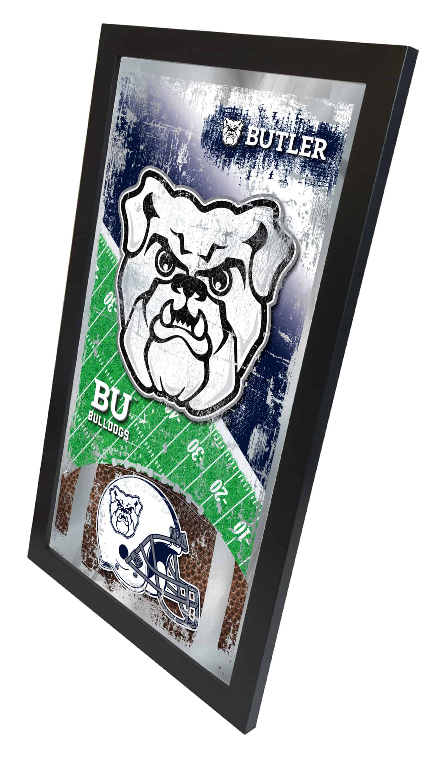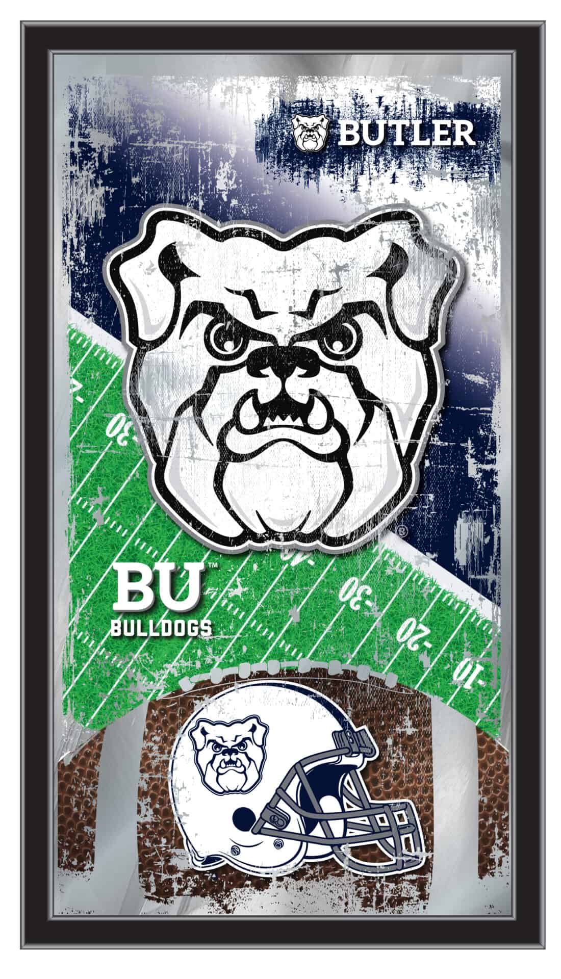 Show your school pride with this officially licensed football mirror. Featuring a simple yet elegant design, the colors burst through the 1/8″ thick glass and are beautifully highlighted by mirrored accents. Framed in a stylish black, 1 1/4″ wrapped wood frame with dual saw-tooth hangers, this 15″ (H) x 26″ (W) mirror is perfect for your office, garage, or any room in your home. Whether you’re purchasing it as a gift for a recent graduate, a dedicated sports fan, or treating yourself, this mirror is a fantastic choice.
