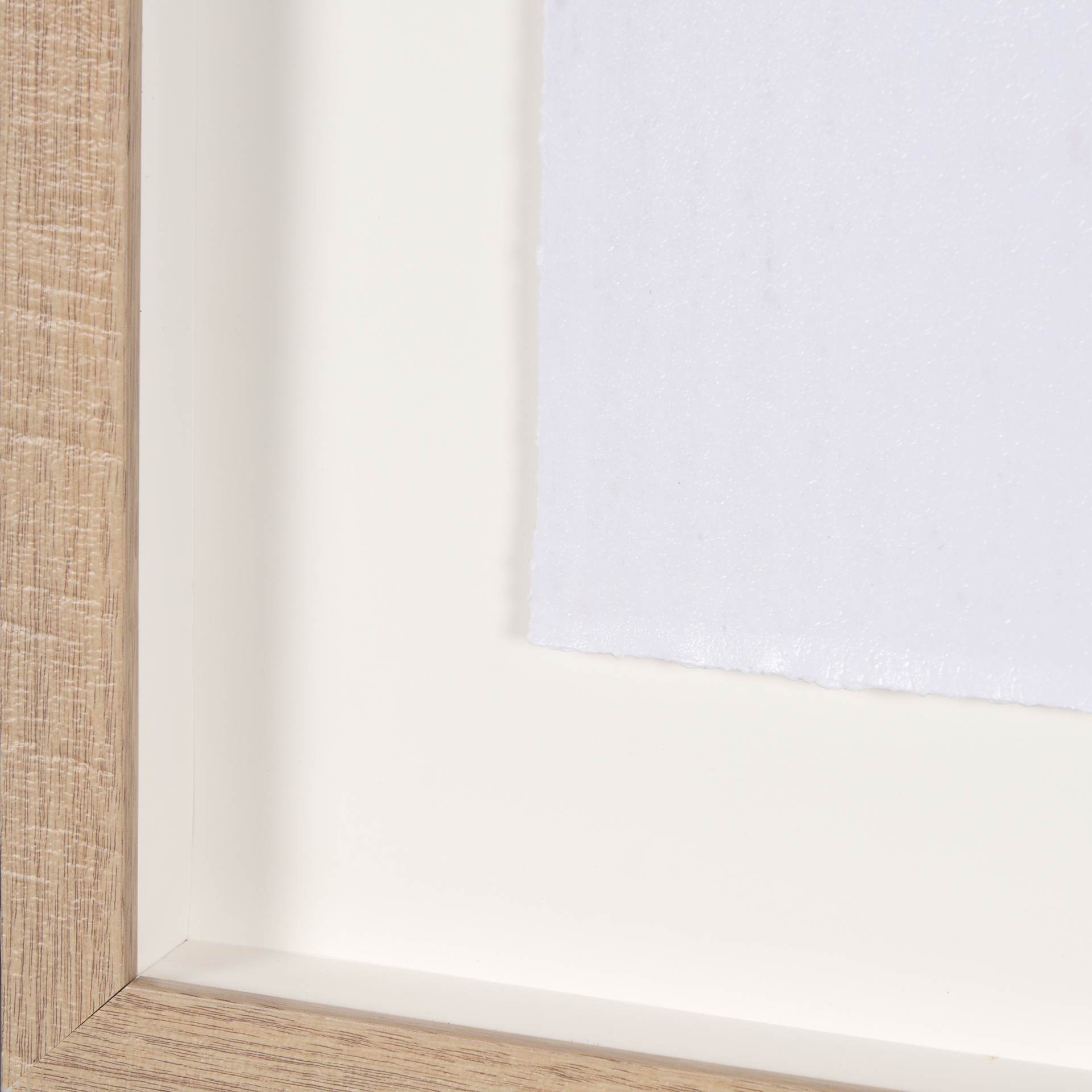 This artwork offers a unique textured surface that enhances its visual appeal, drawing you into its serene world. The glass and matting provide protection and elevate the overall presentation, making it a refined and lasting piece of decor.