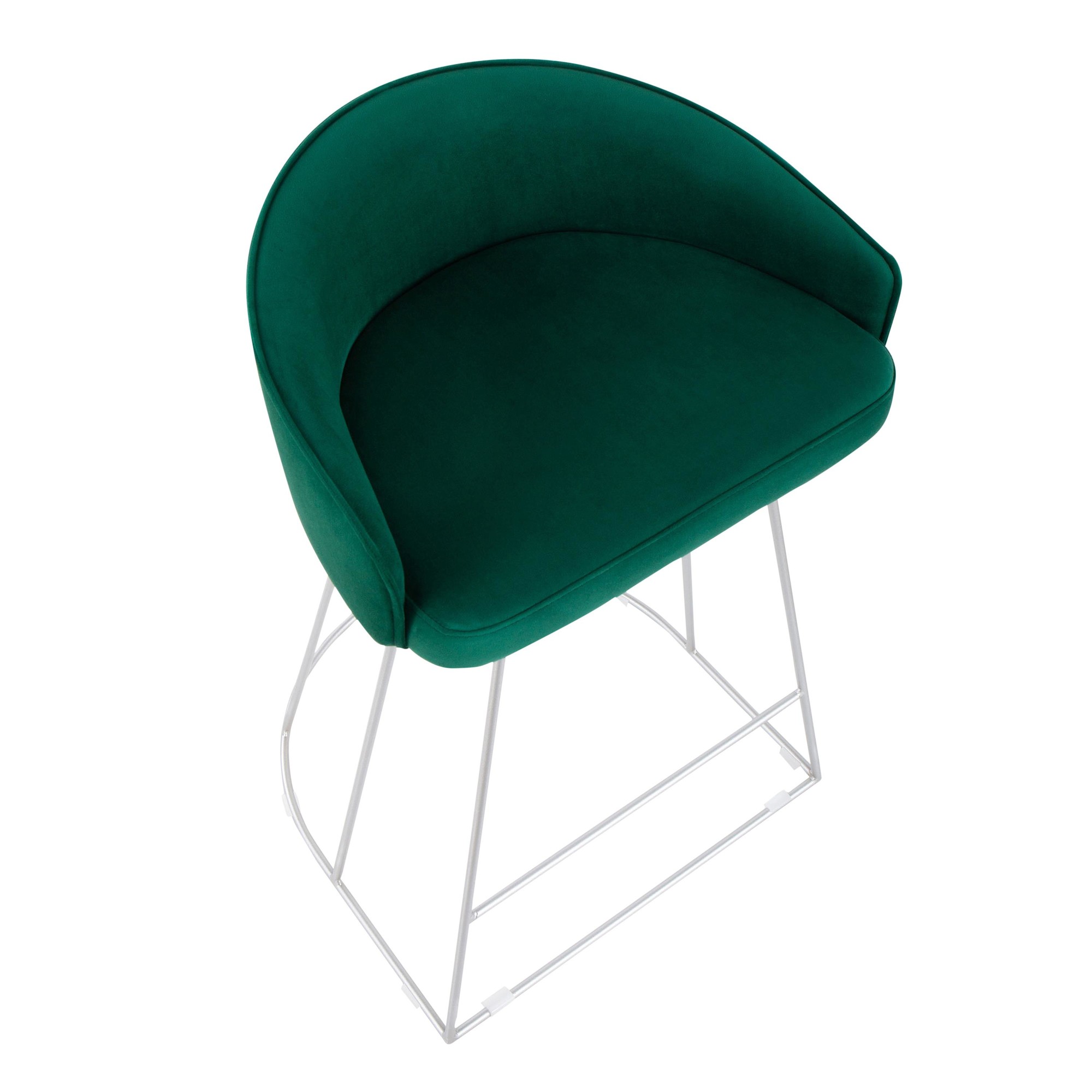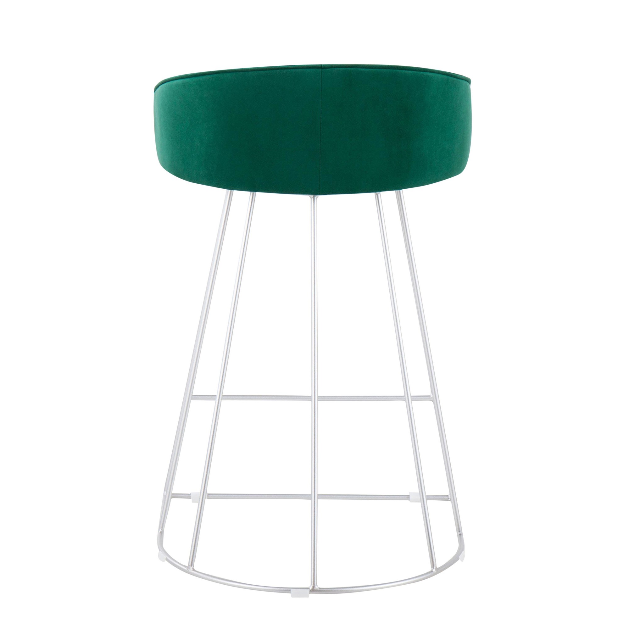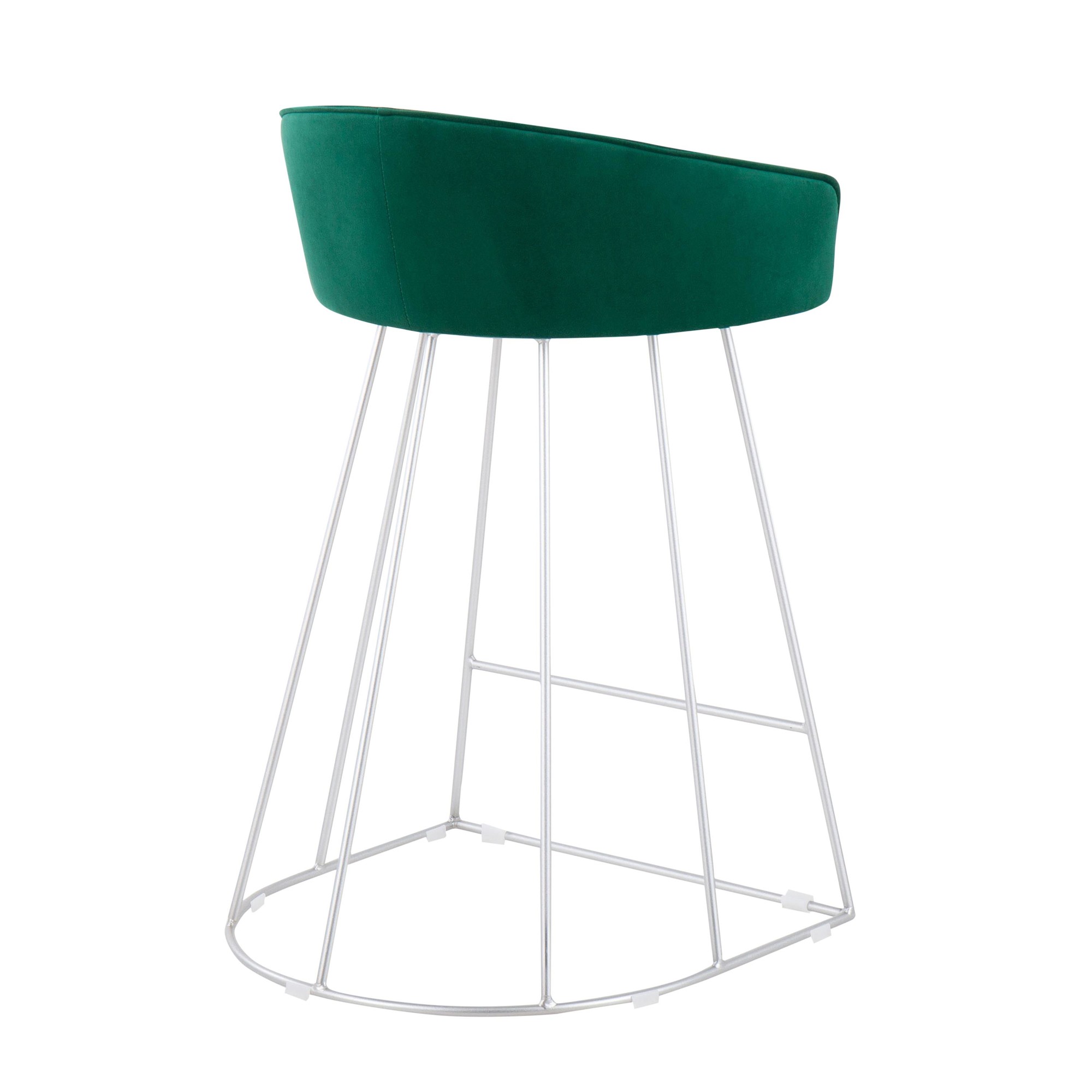 Canary Green Velvet Silver Contemporary Counter Stools (Set of 2)