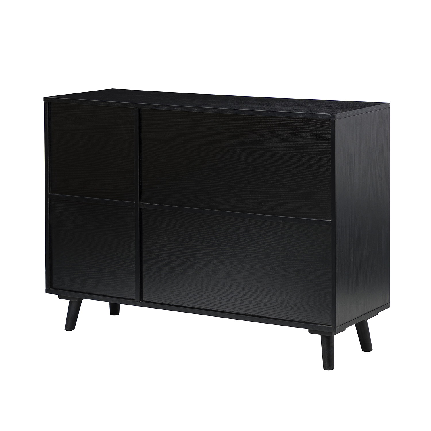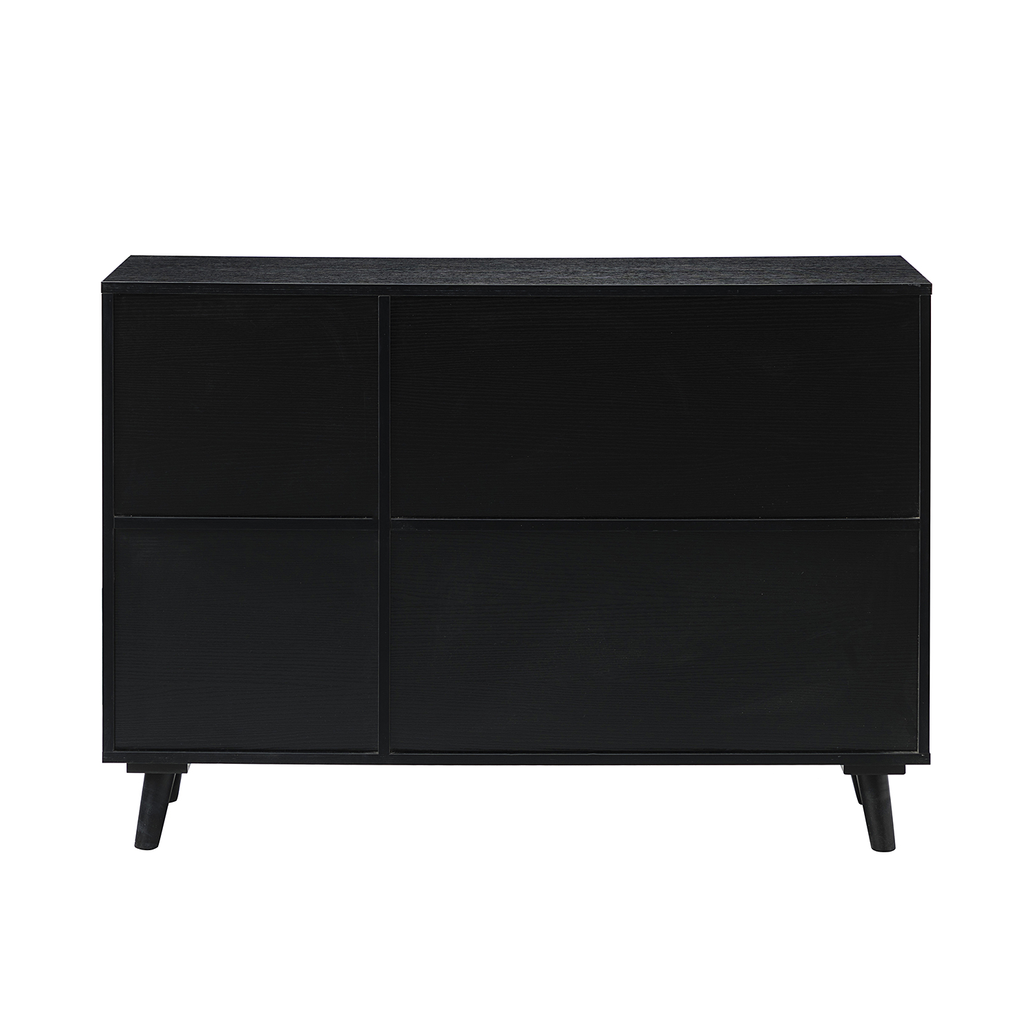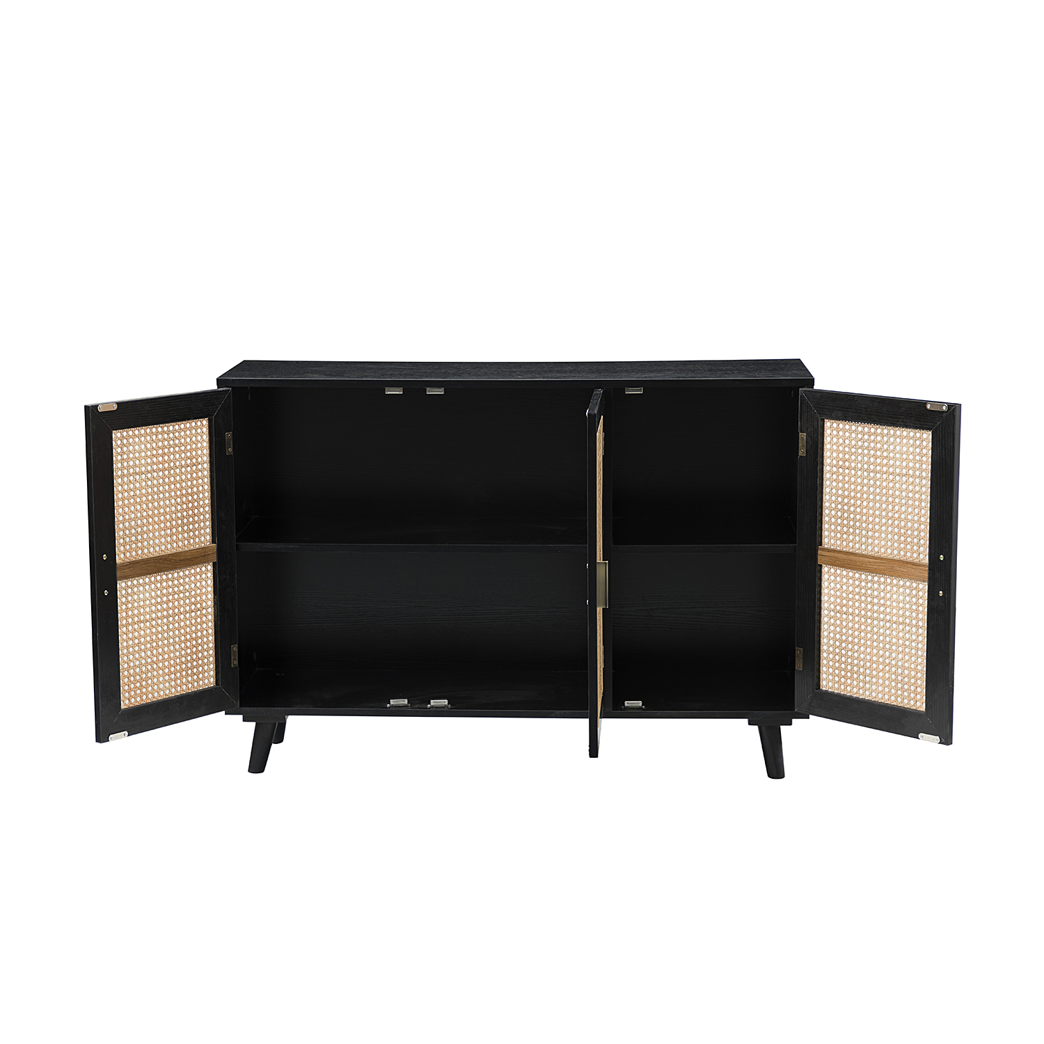 Looking to add extra storage without sacrificing style? This contemporary accent cabinet is the perfect solution. Keep clutter under control with this cabinet crafted from solid and manufactured wood, finished in a classic color. Behind its three rattan doors, complete with retro metal bar pulls, lies a hidden storage area featuring two spacious shelves, offering ample space for organization. Enjoy long-lasting use with its sturdy frame, supported by four legs for perfect stability and durability. Its simple design and charming style make this storage cabinet ideal for any room – living room, hallway, dining room, or bedroom.