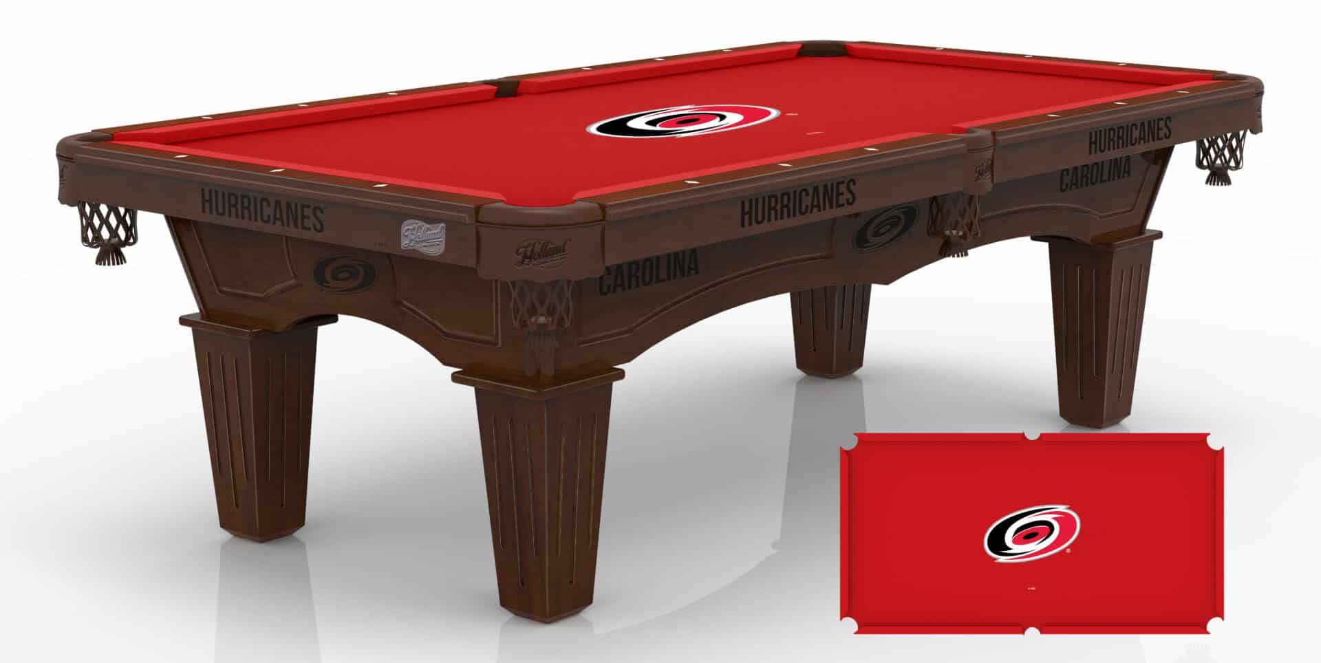 The Carolina Hurricanes Pool Table with Navajo Finish and Tapered Leg is a professional-quality pool table designed to bring a refined and timeless appeal to any game room or man cave. Featuring a superior double-arch cabinet construction with CNC routing, this table is as durable as it is visually striking. The beautiful Navajo finish complements a wide range of room décors, while the table’s precision-engineered components ensure exceptional gameplay.