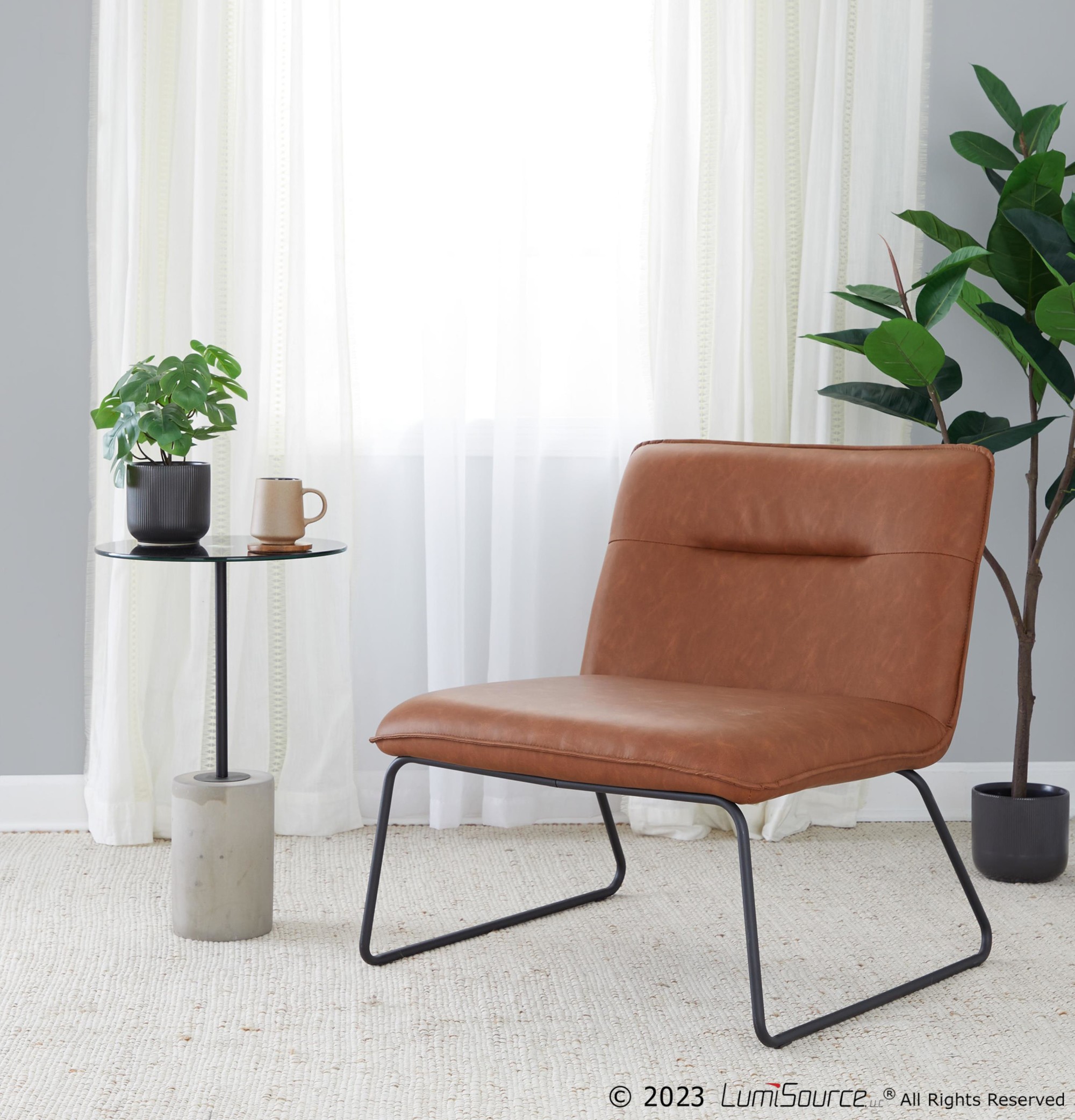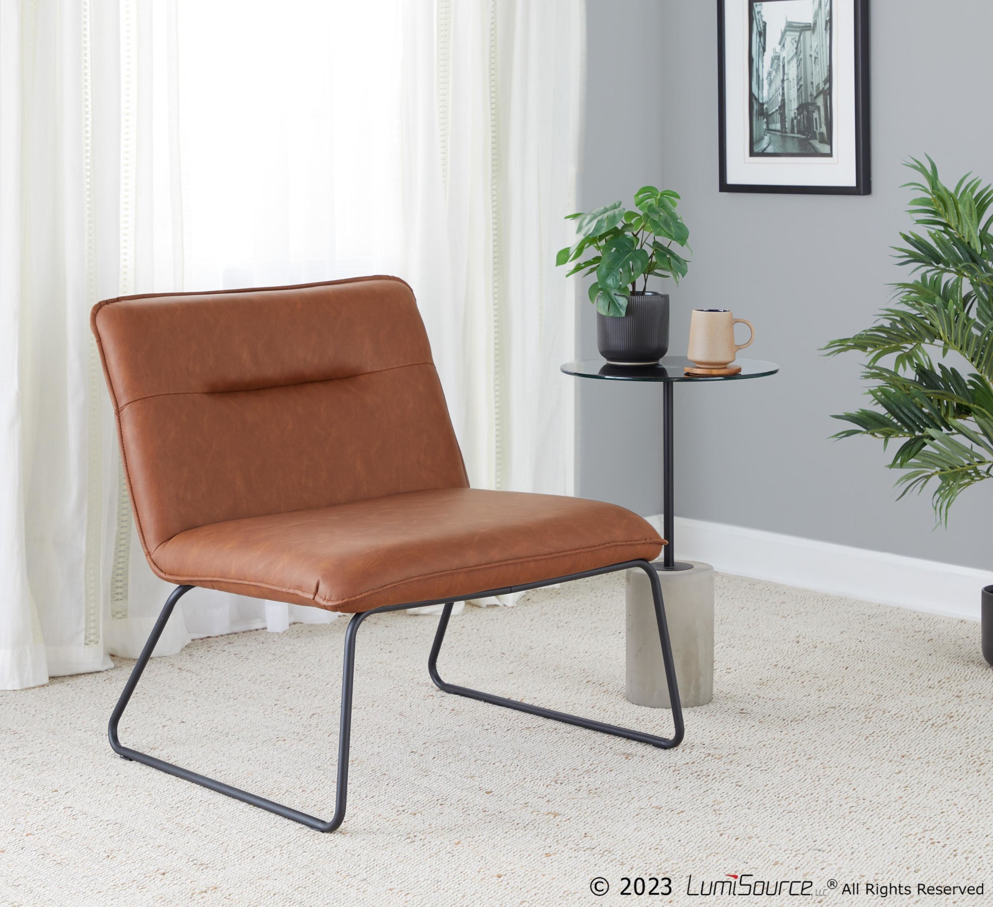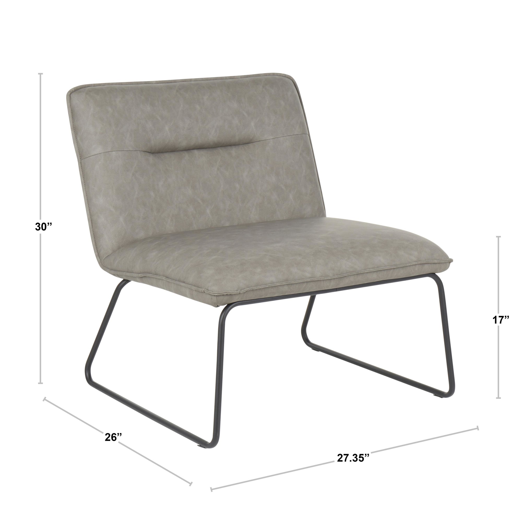 The Casper Accent Chair brings comfortable and stylish seating to your home in a sleek design. This chair features a padded seat and back upholstered in sophisticated faux leather. Black metal sleigh legs provide durable support and add to the chair’s industrial charm.