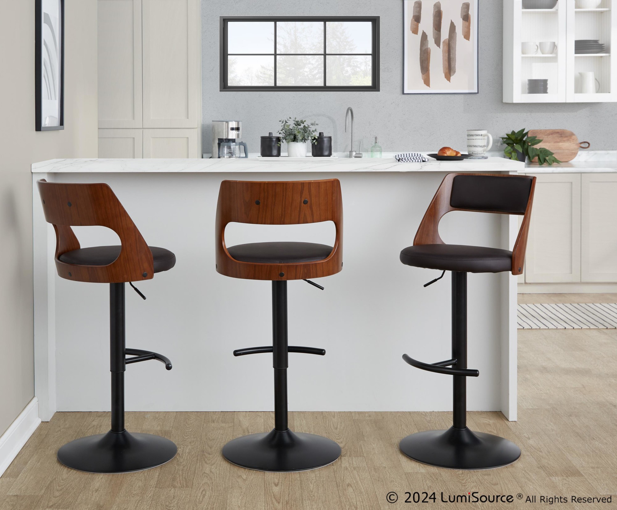 The Cecina Mid-Century Modern Adjustable Swivel Barstool brings a touch of retro cool to your man cave bar. This stylish stool features an upholstered seat and backrest, providing exceptional comfort, while its adjustable height and 360-degree swivel let you find the perfect position. The sturdy metal base with a built-in footrest ensures stability and support. Sold in pairs, these barstools are a fantastic addition to any contemporary space.